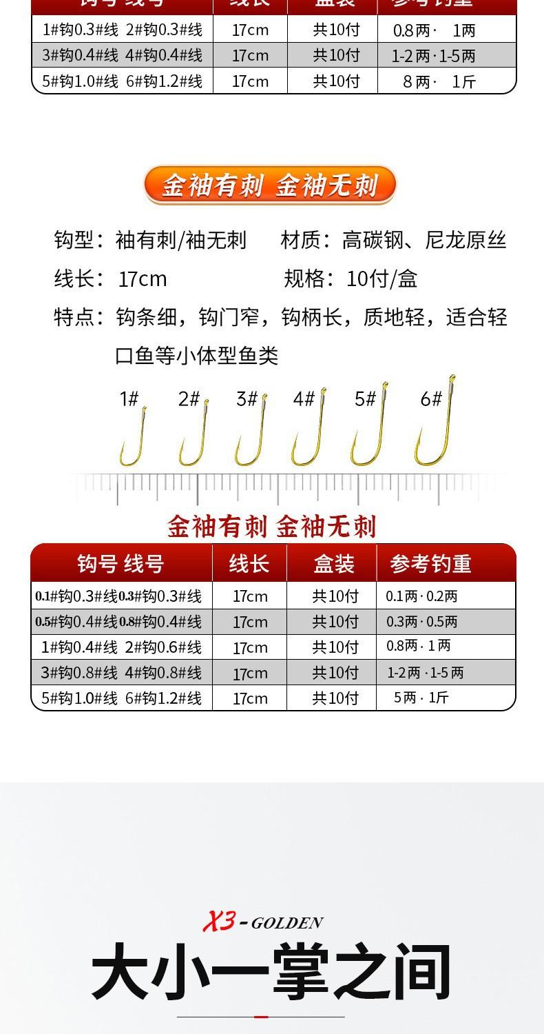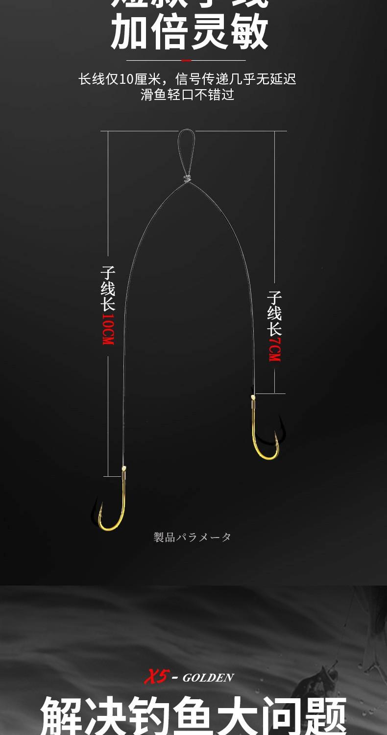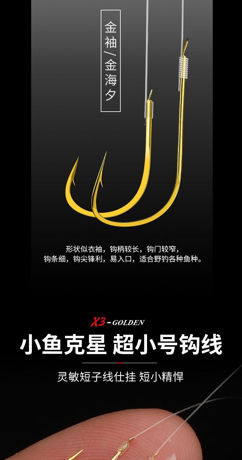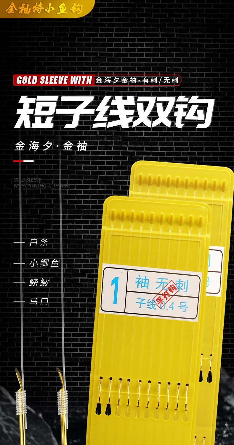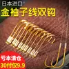 Anzuelo doble de hilo ultracorto con manga dorada, atado a mano, producto terminado, apto para pesca de carpas, juego completo de anzuelos pequeños de rayas blancas, venta al por mayor