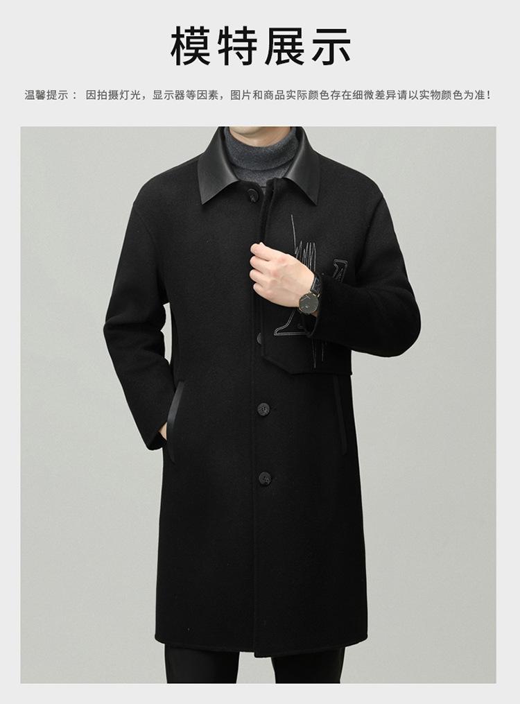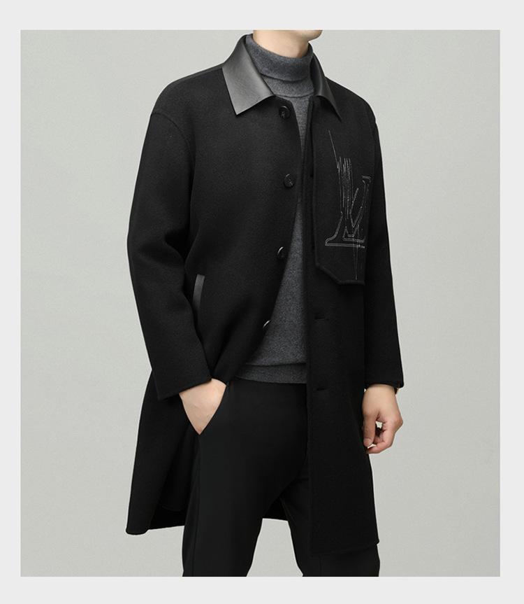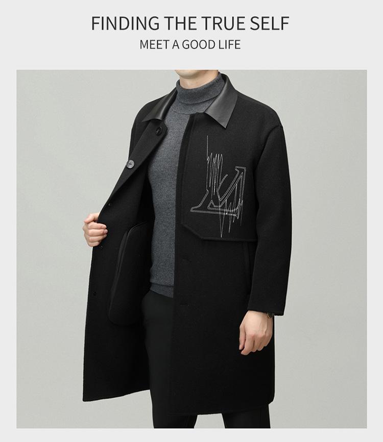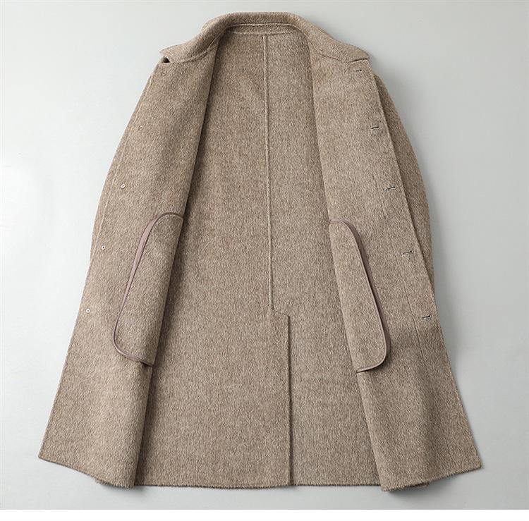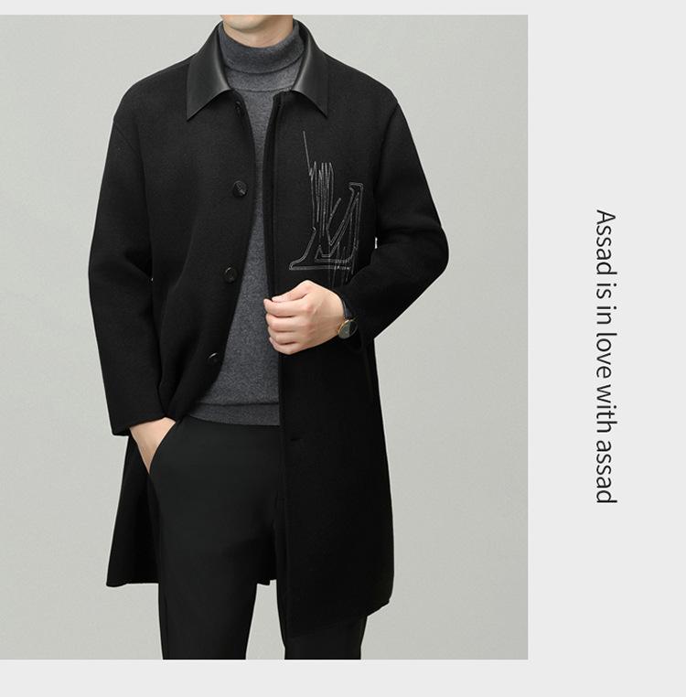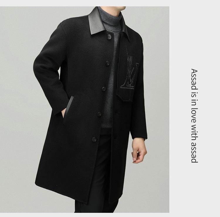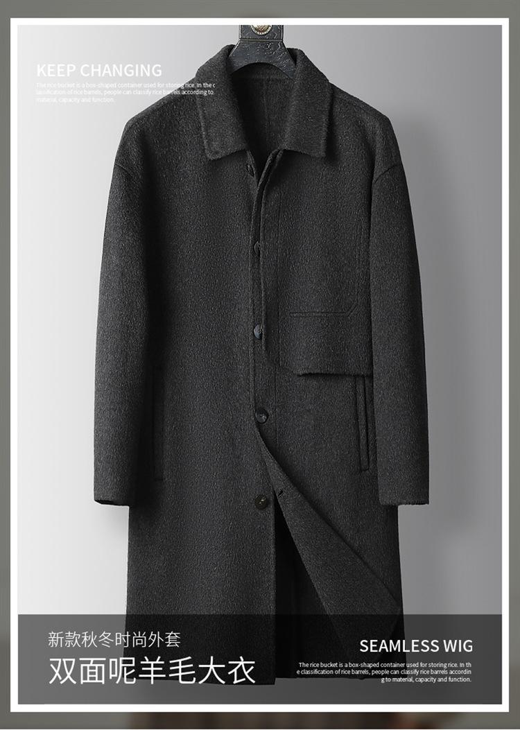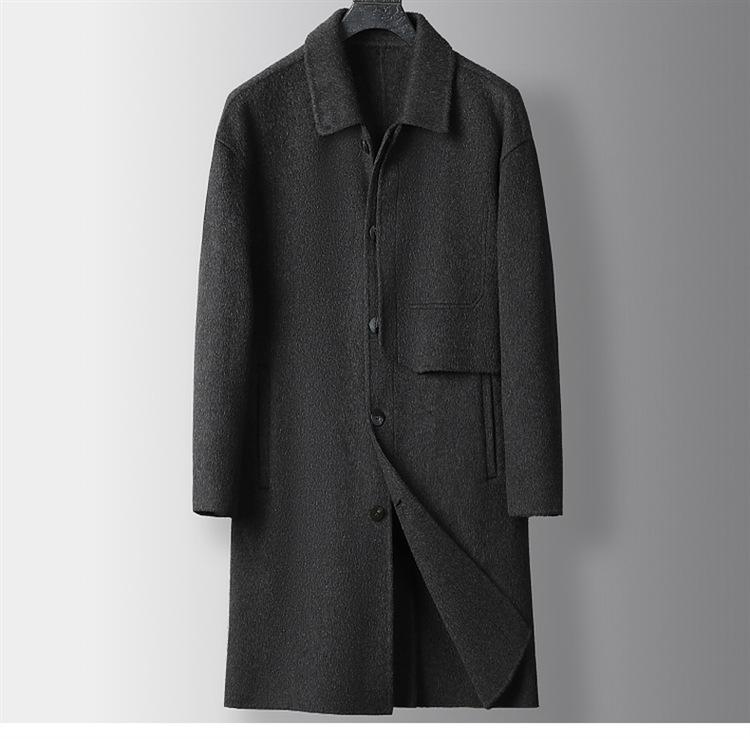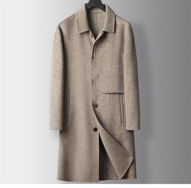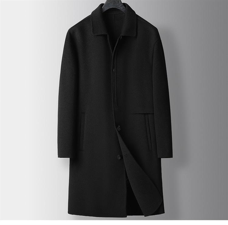 Abrigo de Lana de Doble Vista para Hombre Nuevo Otoño e Invierno Largo Medio Solapa 2025 Otoño e Invierno Nuevo Chaqueta Cortavientos Casual Diaria