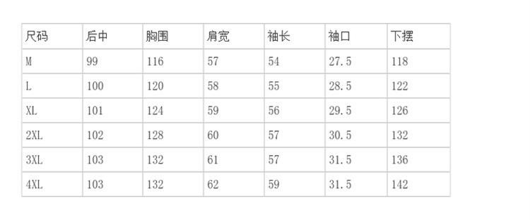 170/M, 175/L, 180/XL, 185/2XL, 190/3XL, 195/4XL
