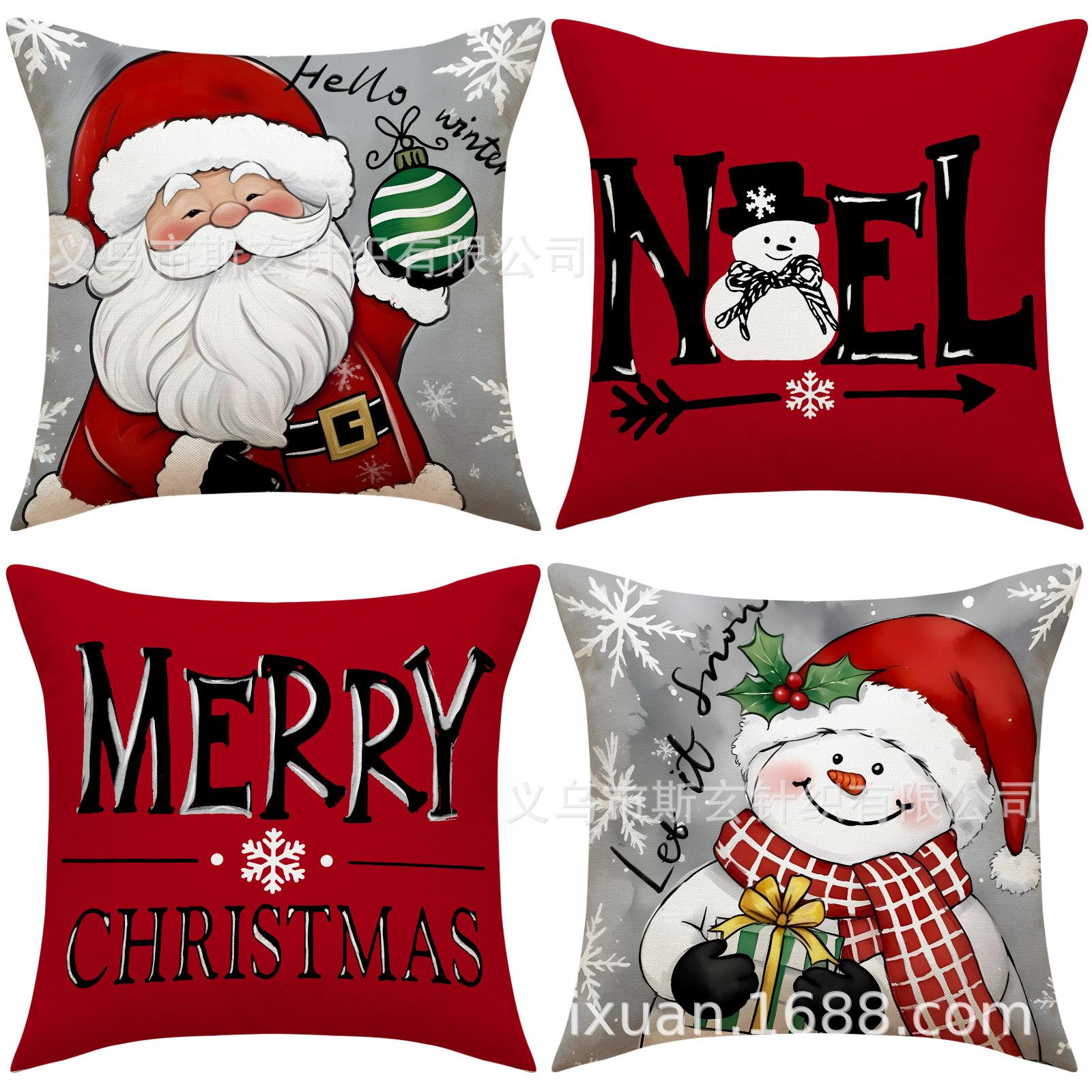 Funda de almohada de lino navideña con dibujos animados transfronterizos, decoración navideña para sofá, funda de cojín, decoración navideña de Amazon
