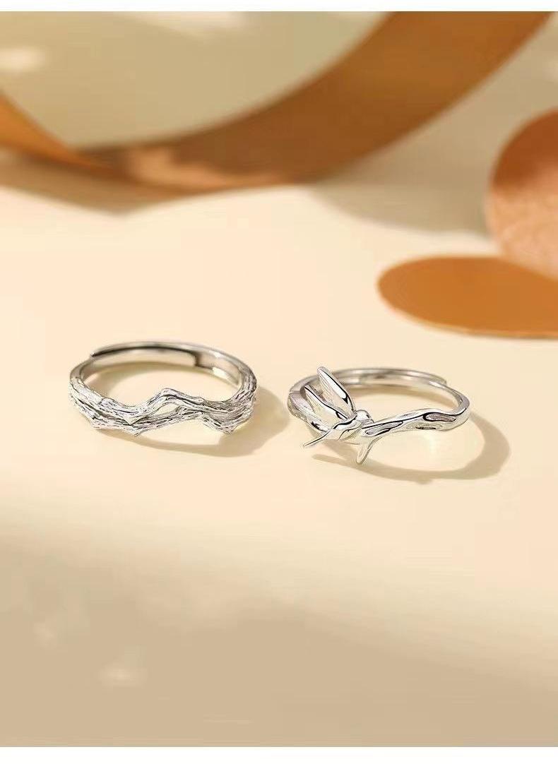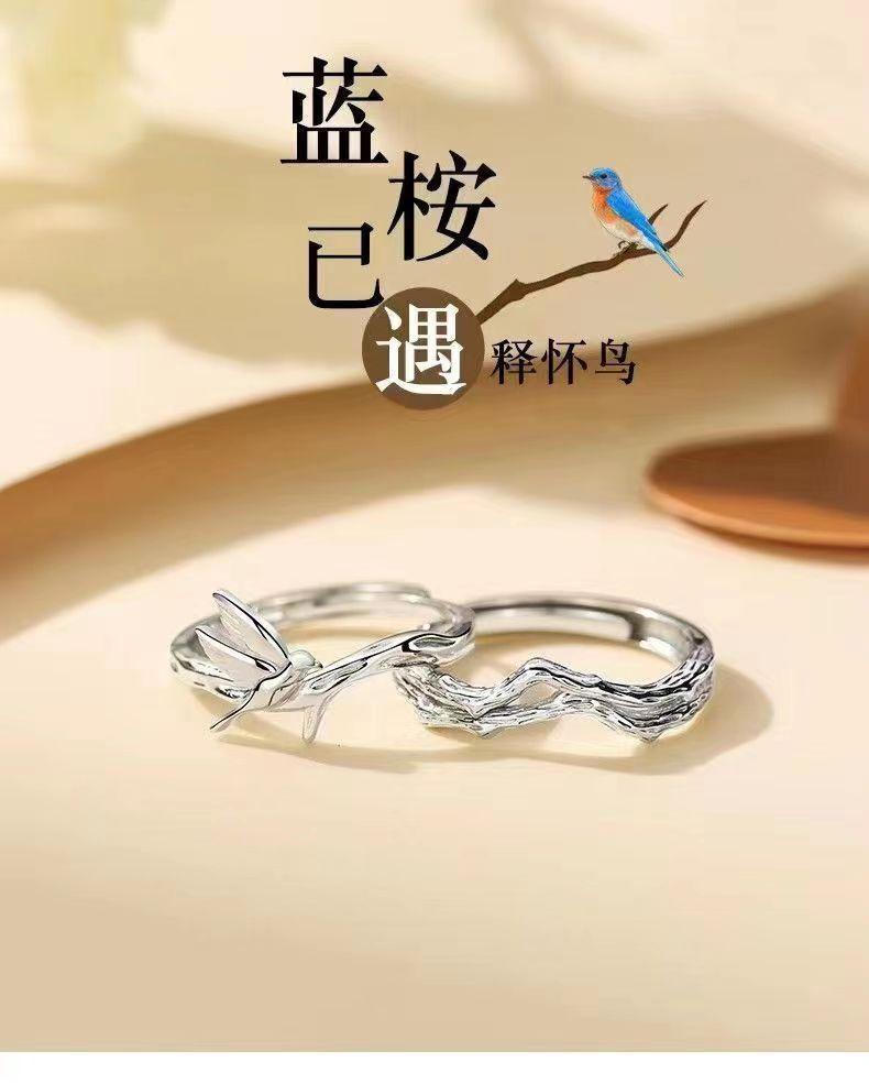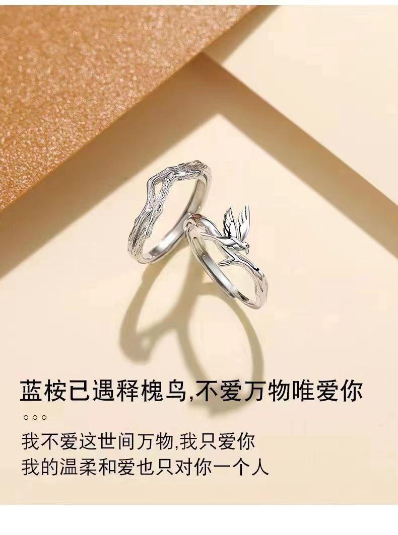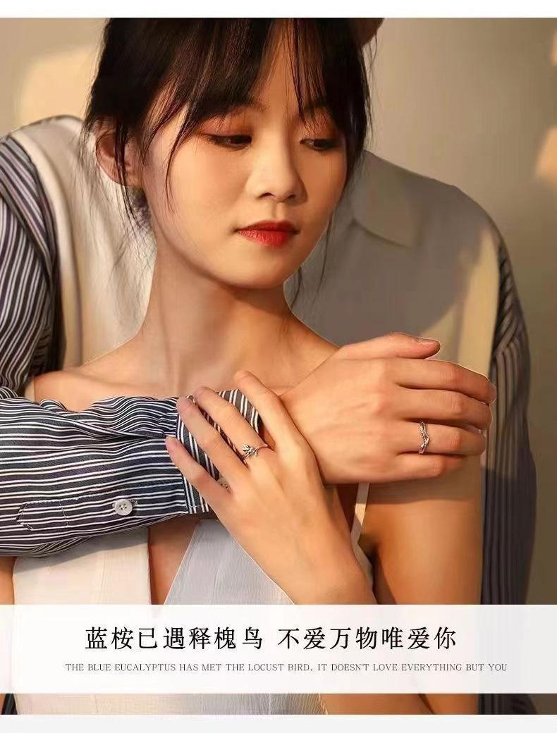Eucalyptus globulus ha conocido al anillo de los amantes del pájaro Huai plata esterlina s925 para hombres y mujeres un par de anillos de diseño pequeño regalo del día de San Valentín