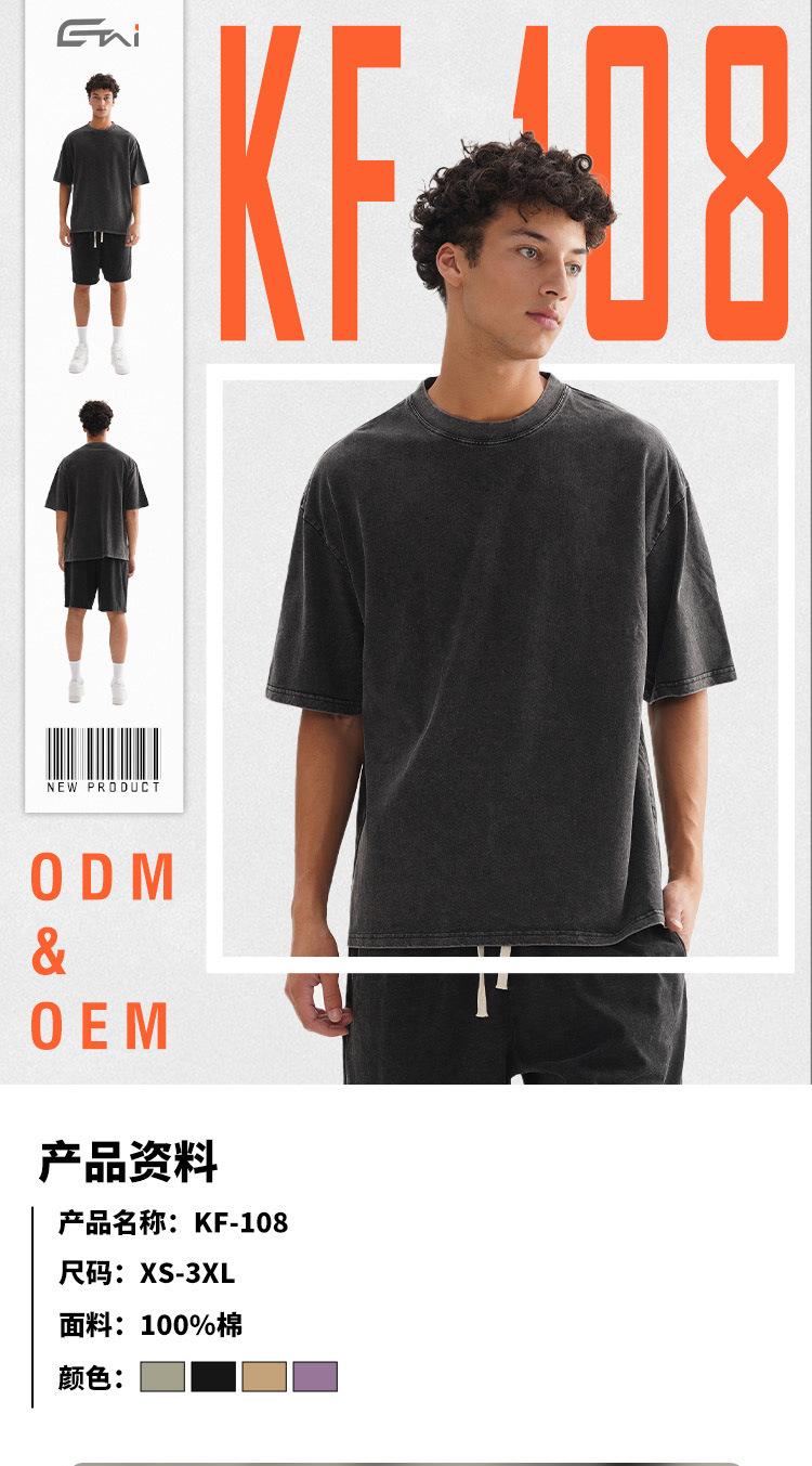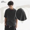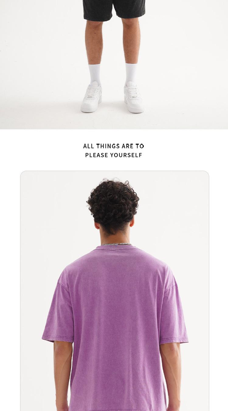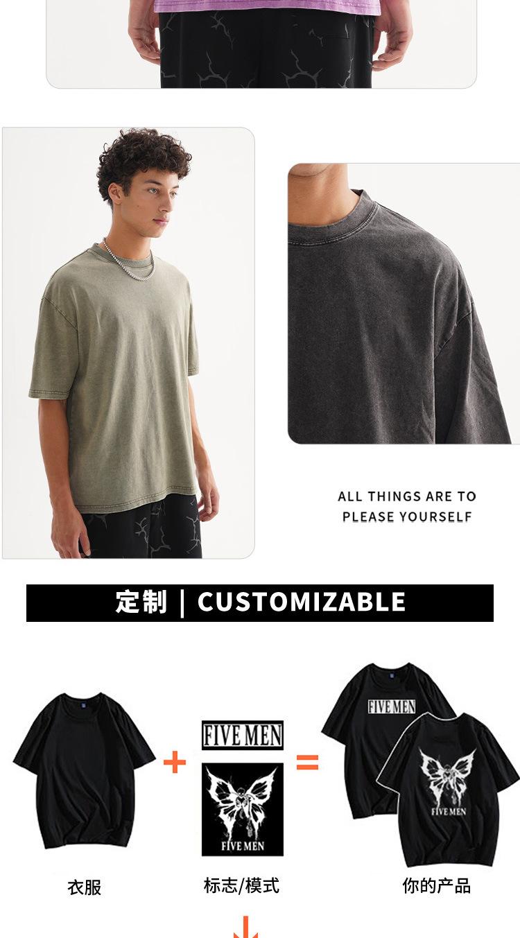 ETAI - Camiseta de manga corta para hombre, estilo retro americano, color liso, con hombros sueltos y lavado pesado, marca de moda transfronteriza