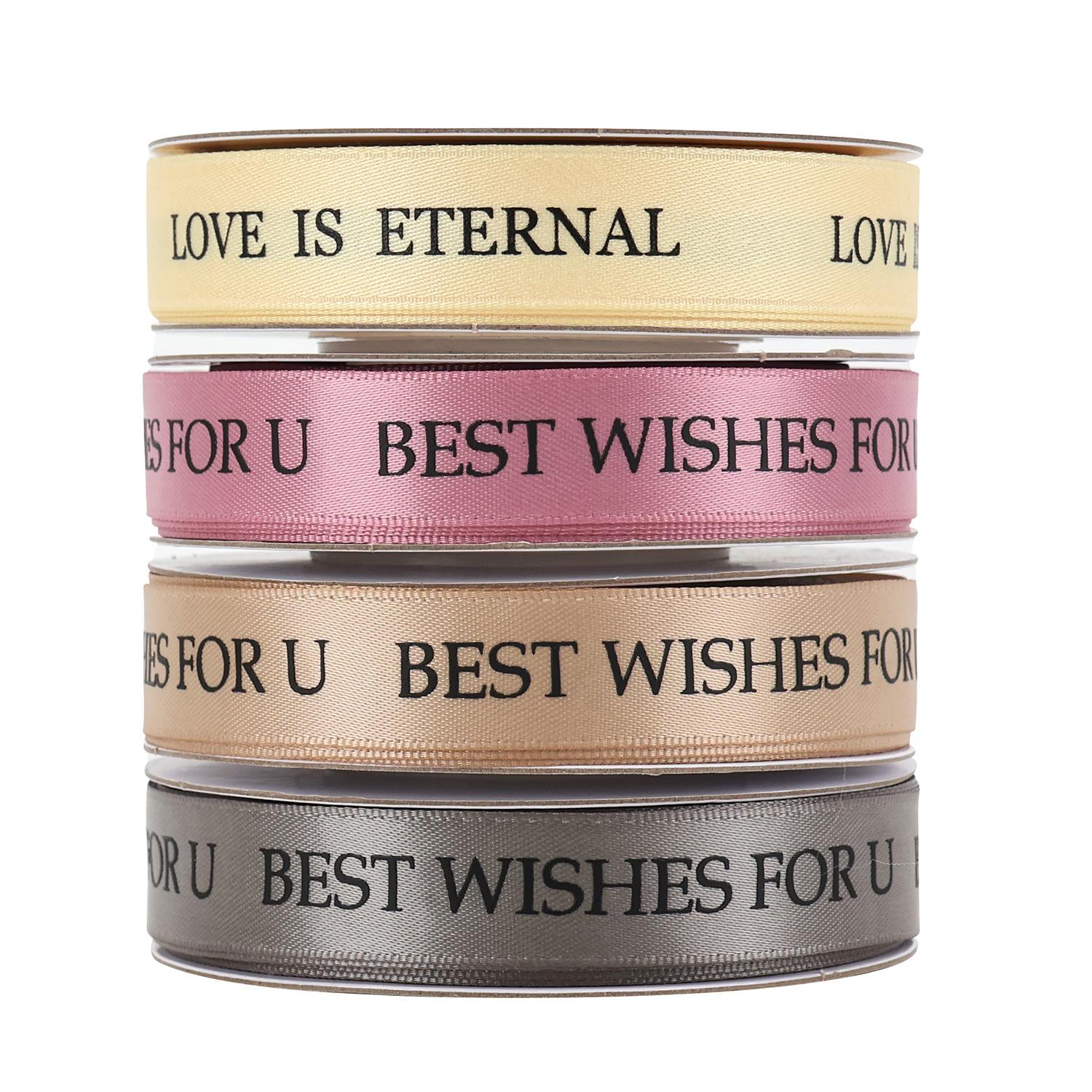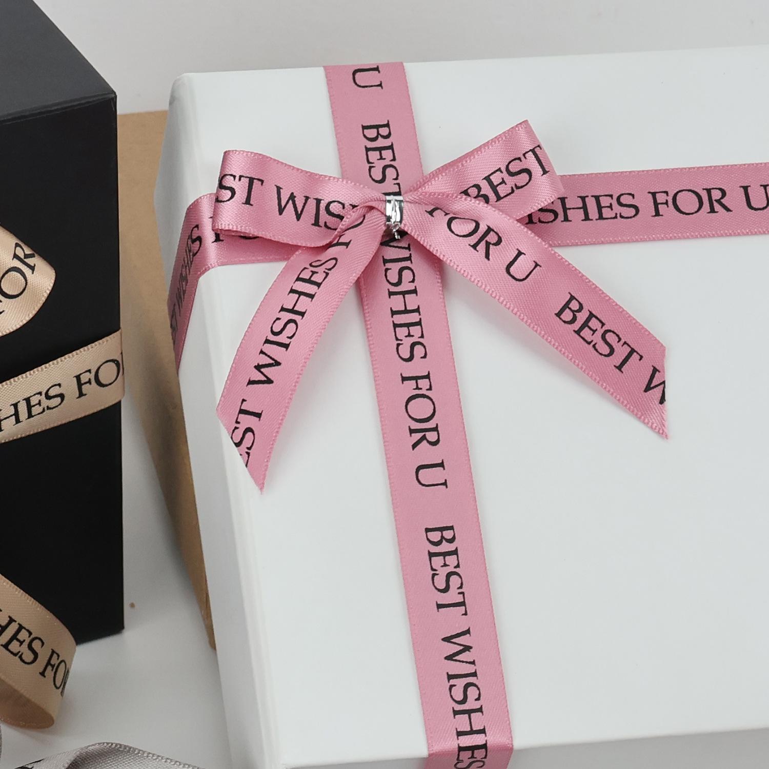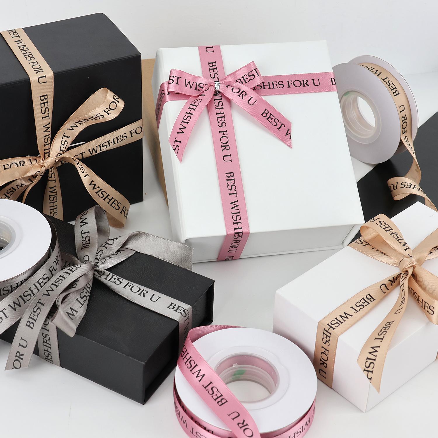 Cinta personalizada con logotipo impreso en letras inglesas, patrón de marca, cinta para embalaje de caja de regalo con flores