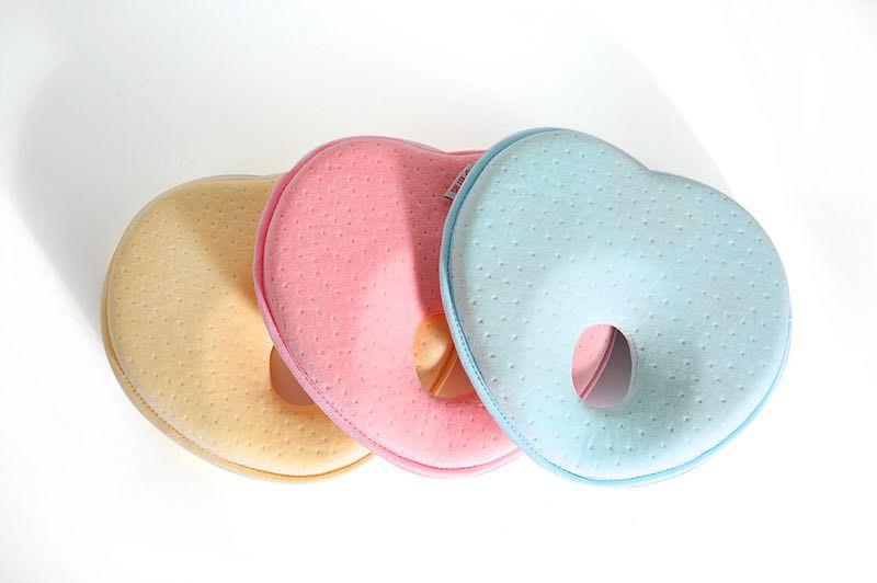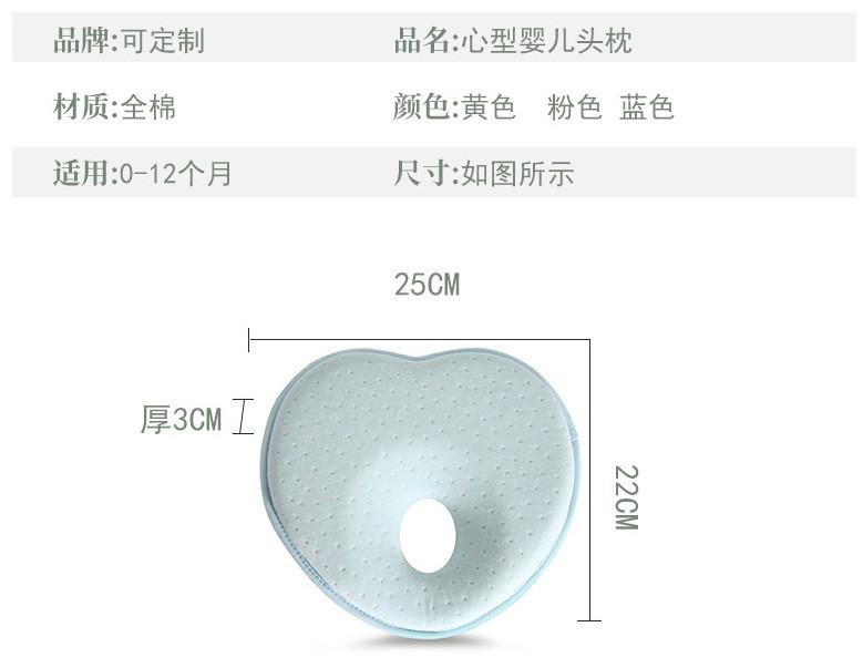 Reposacabezas antidesviación para recién nacidos, con forma de I, disponible al por mayor, almohada en forma de corazón para bebé, almohada con núcleo de algodón con memoria de rebote lento.