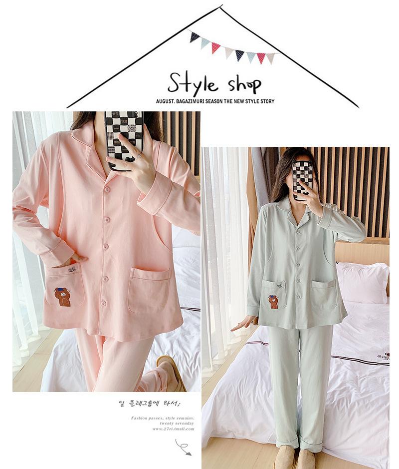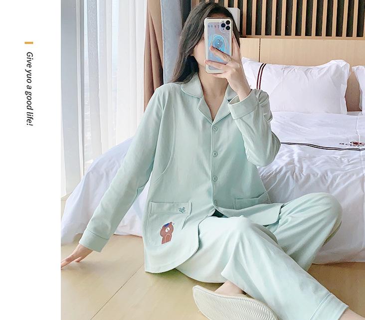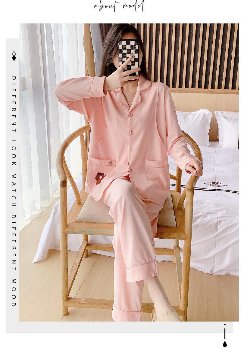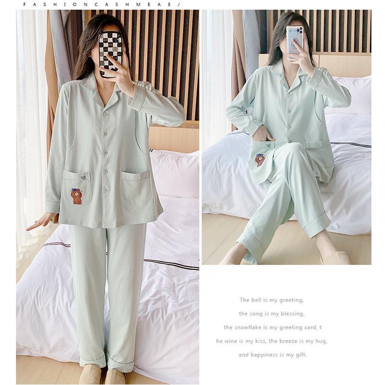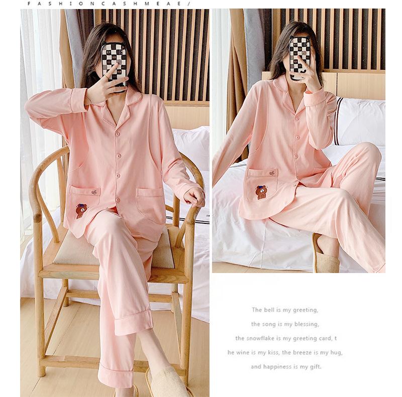 Ropa de confinamiento de algodón, pijamas de maternidad, primavera y otoño, posparto, cárdigan de lactancia, ropa de casa de oso marrón, traje de manga larga