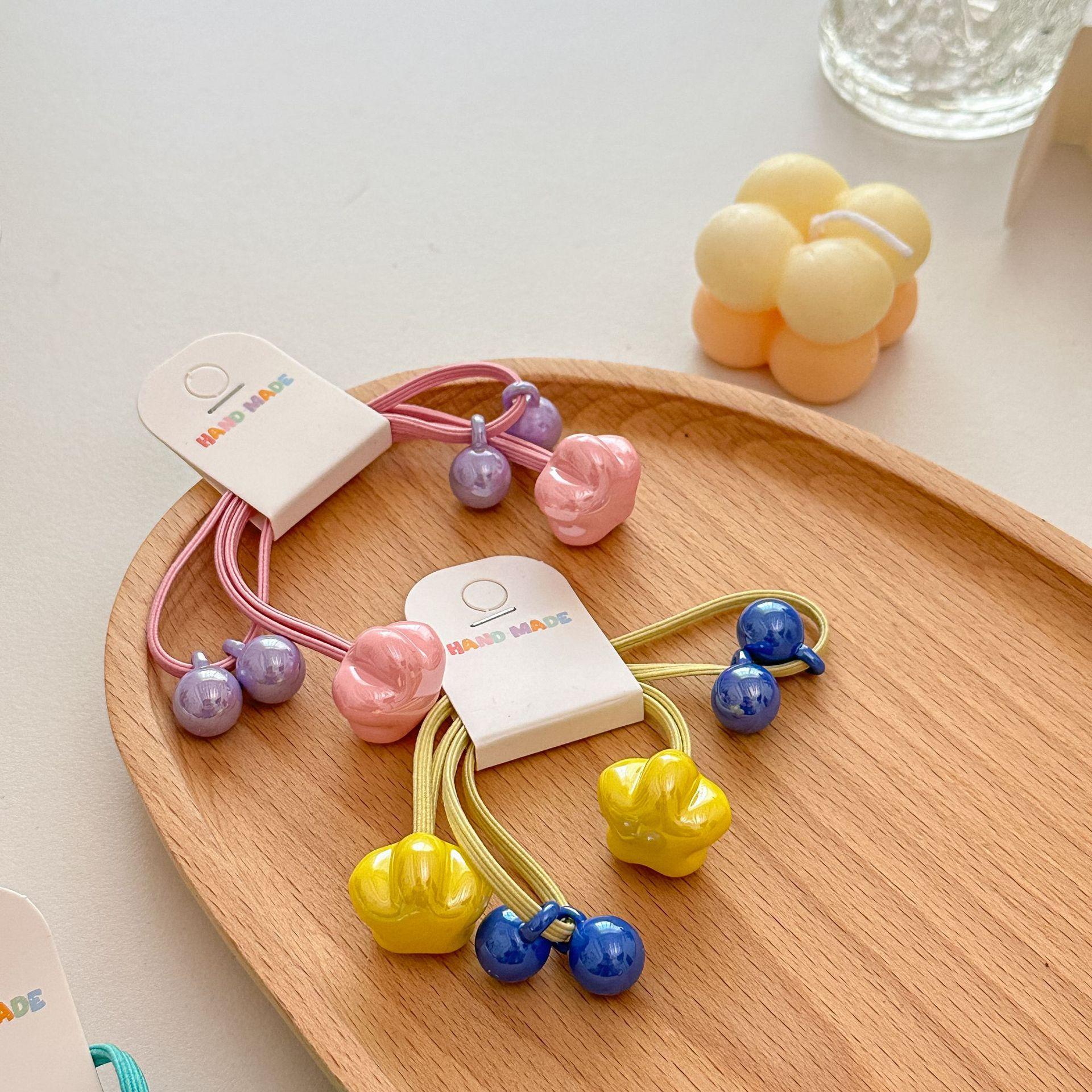 Cuerda para el cabello de dos piezas, bonita y elástica, para niños de Corea del Sur, con doble cabeza, para bebé, banda de goma, aro para el cabello, tocado