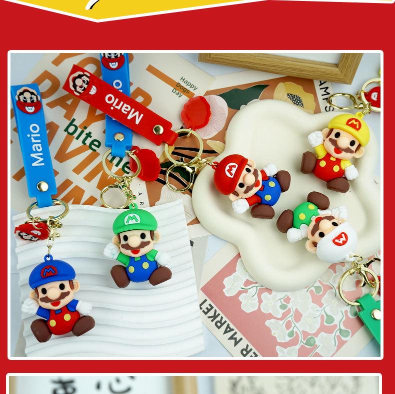 Nueva serie de dibujos animados Mario, pareja, linda muñeca Super Mary, bolso de estudiante, colgante, llavero de coche