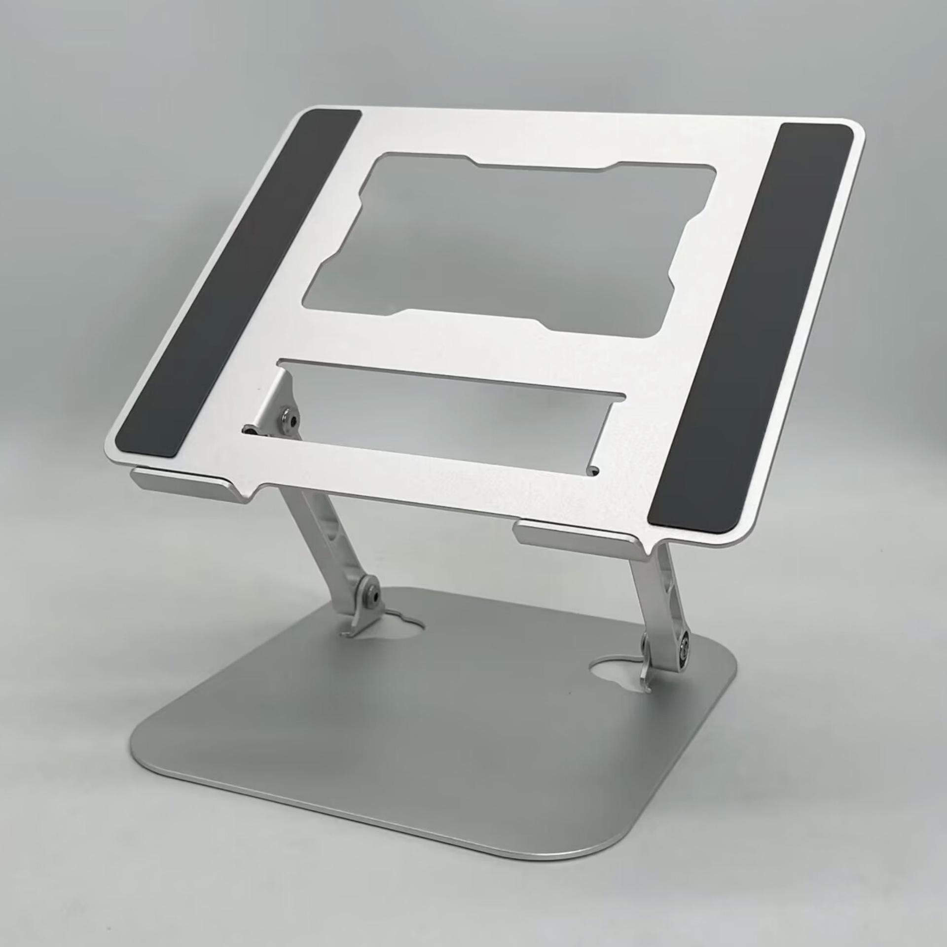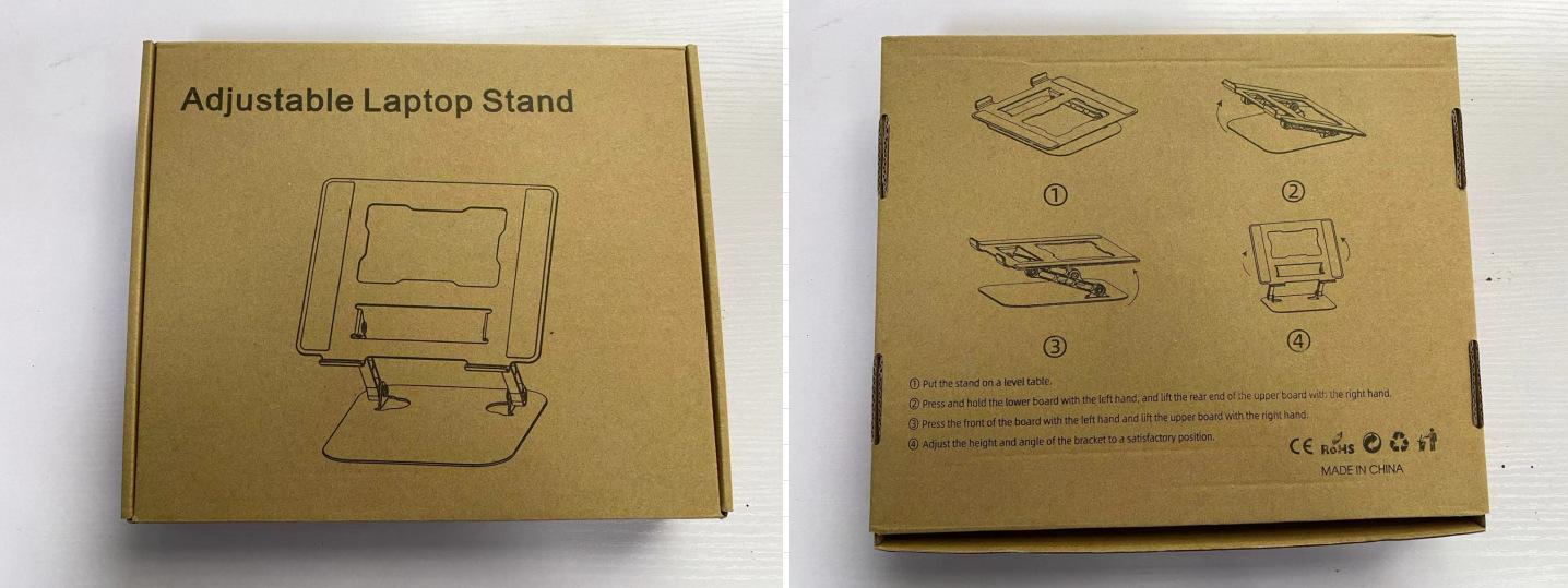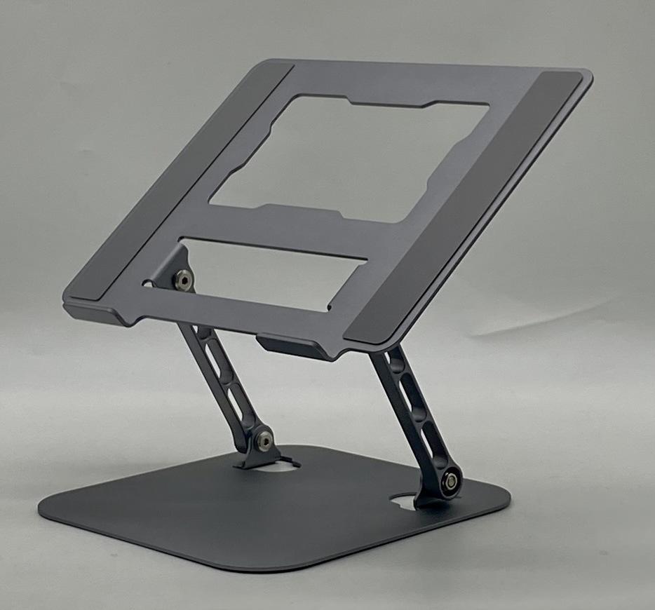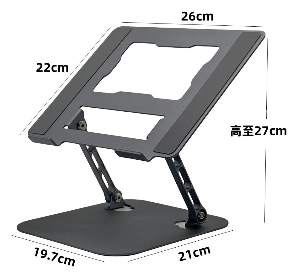 Soporte para laptop D091 Tamaño del panel: 26*22cm, espesor 2.5mm Tamaño de la base: 19.7*21cm, espesor 2.5mm Longitud del poste 14.5cm, ancho 1.2cm Longitud del gancho 4.5cm, ancho 1.5cm