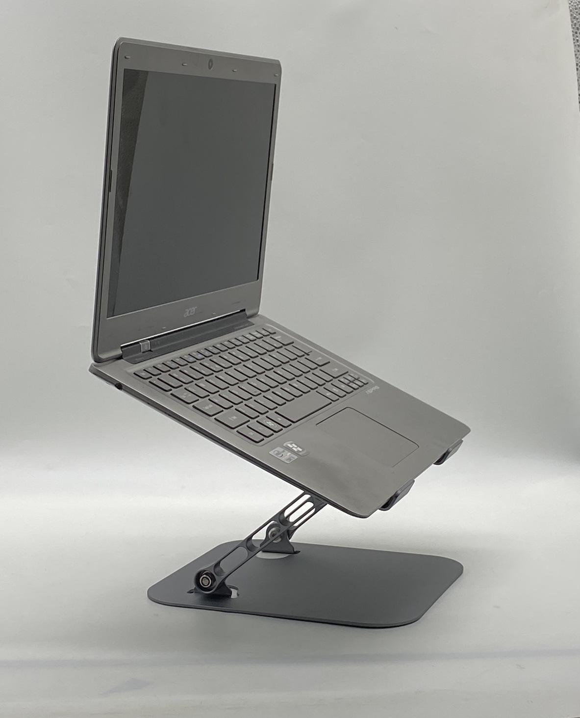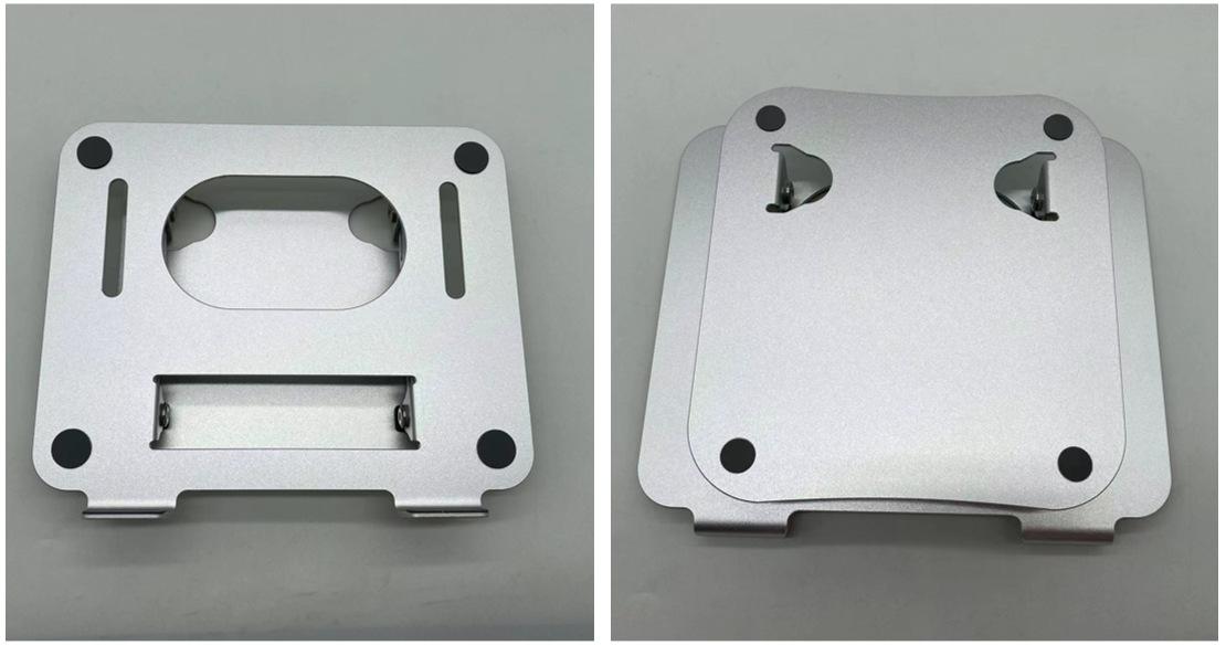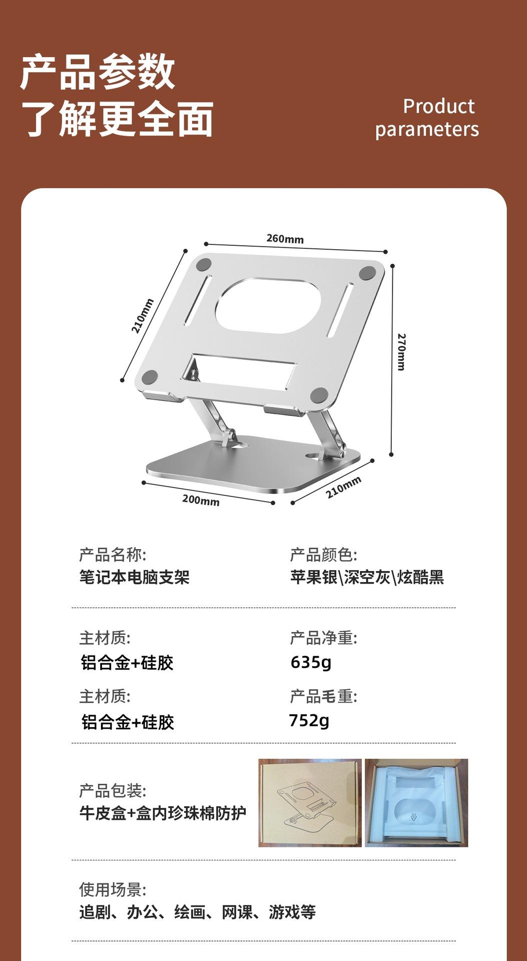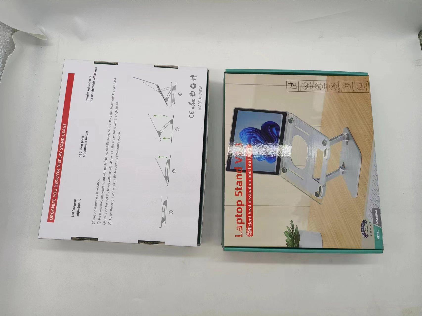 Soporte para laptop D091 Tamaño del panel: 26*22cm, espesor 2.5mm Tamaño de la base: 19.7*21cm, espesor 2.5mm Longitud del poste 14.5cm, ancho 1.2cm Longitud del gancho 4.5cm, ancho 1.5cm