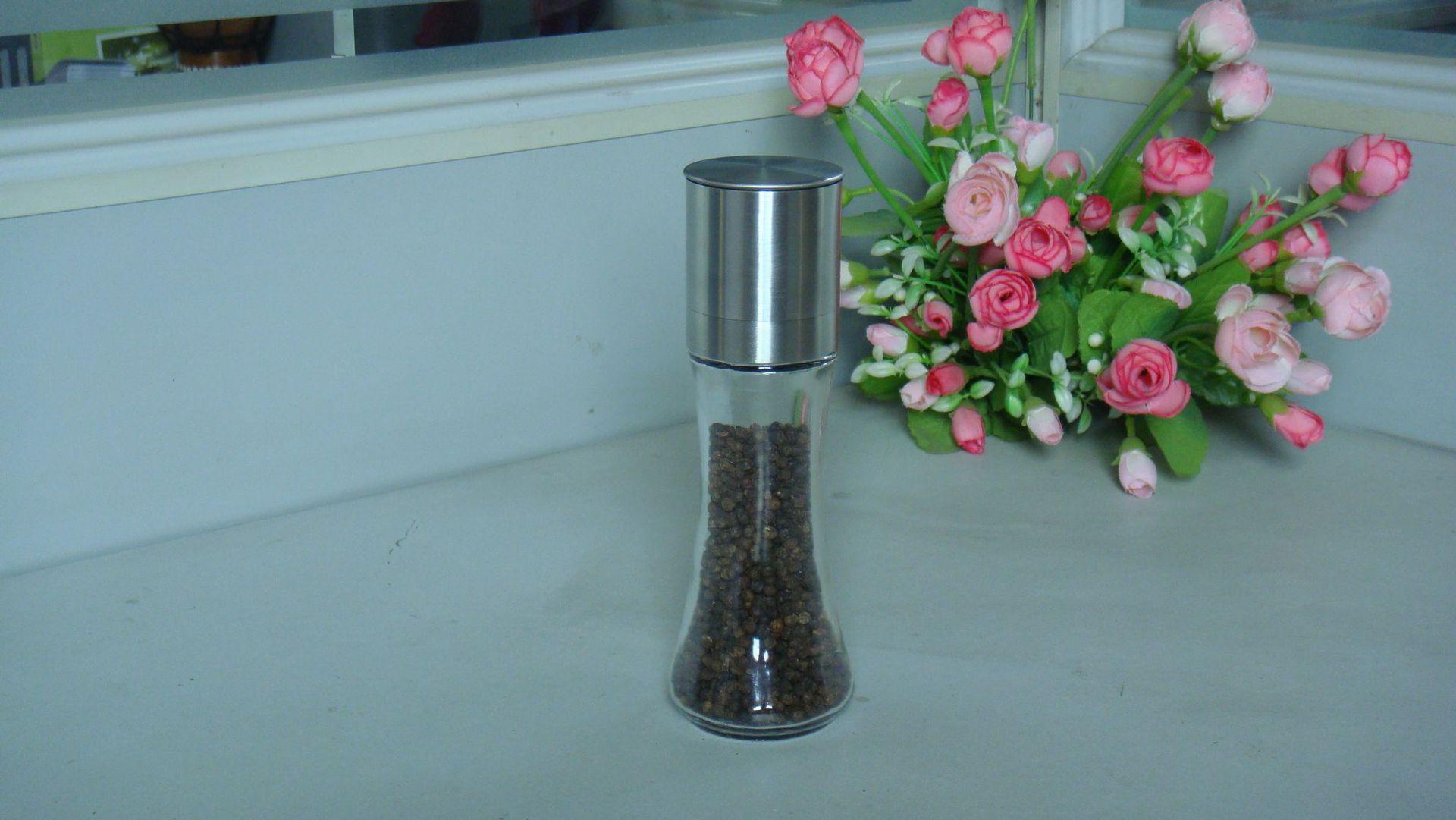 | Venta directa de fábrica, molinillo de pimienta manual de acero inoxidable, molinillo de sal gruesa, botella de condimento con núcleo de cerámica de vidrio |