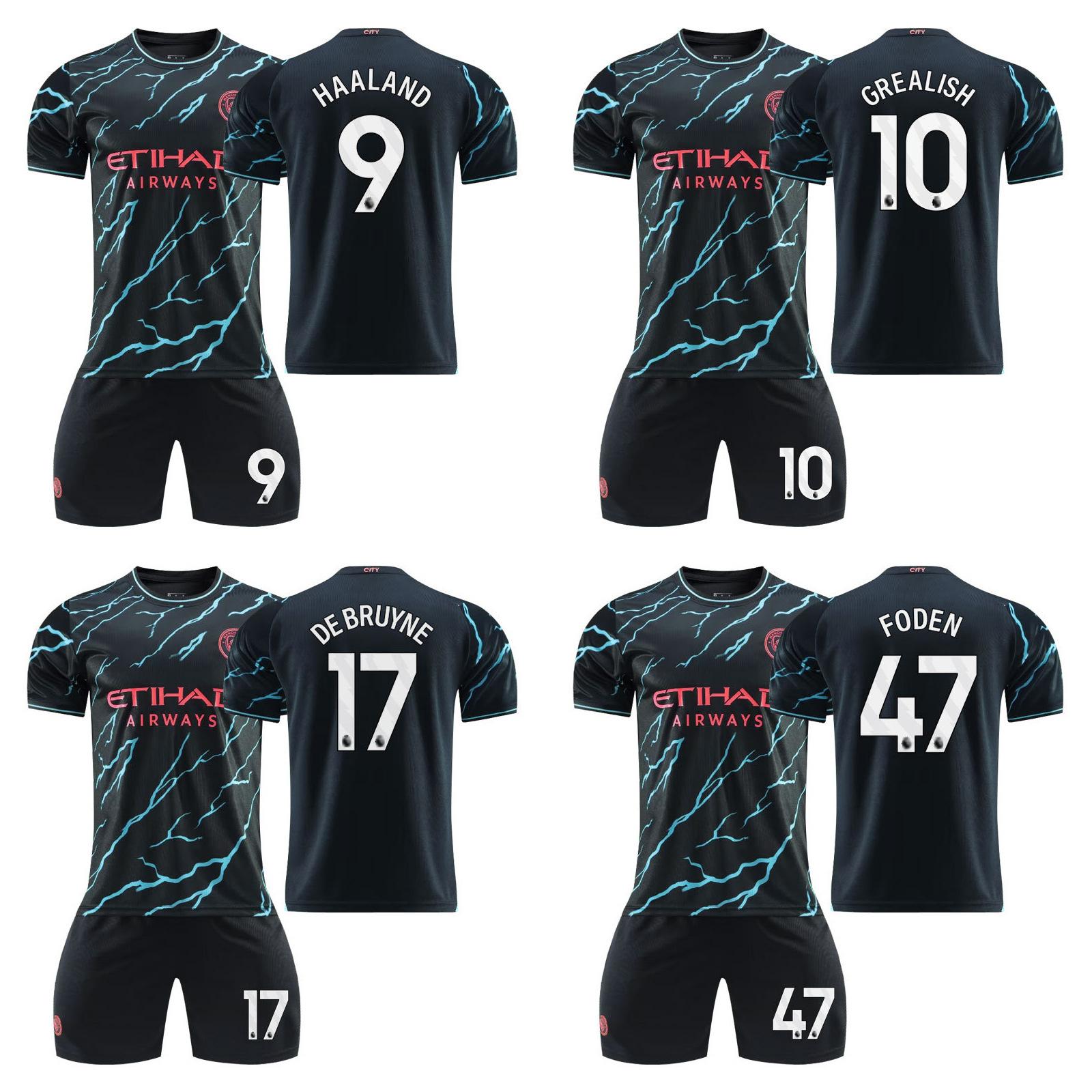 24 Manchester City Segunda Camiseta de Fútbol de Visitante Harland No.9 Traje de Camiseta De Bruyne No.17 Camiseta para Hombre Número Estampado