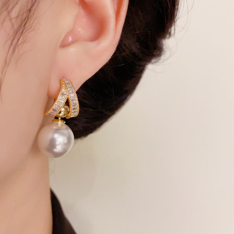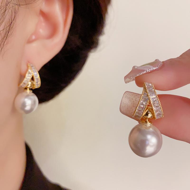 Pendientes de perlas triangulares de circonita multiusos, de diseño retro de moda de nicho, pendientes versátiles de temperamento.