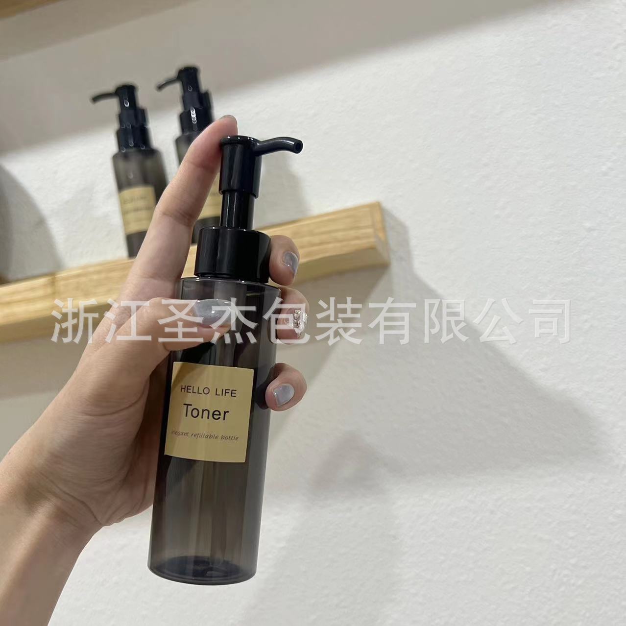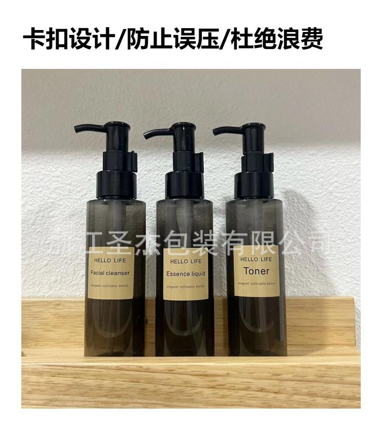 Botella de plástico para limpiador facial con bomba de presión de 100 ml, personalizada, disponible en stock, para rellenar aceites esenciales, pequeñas botellas vacías.