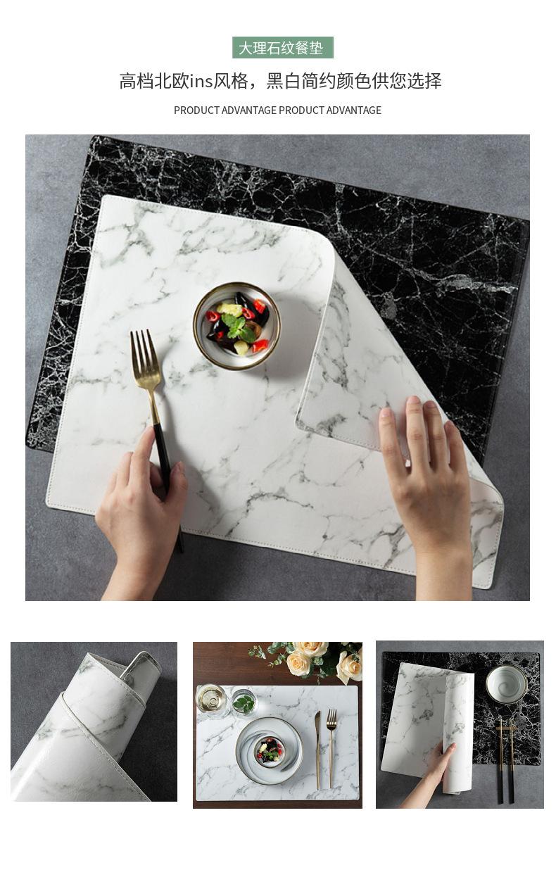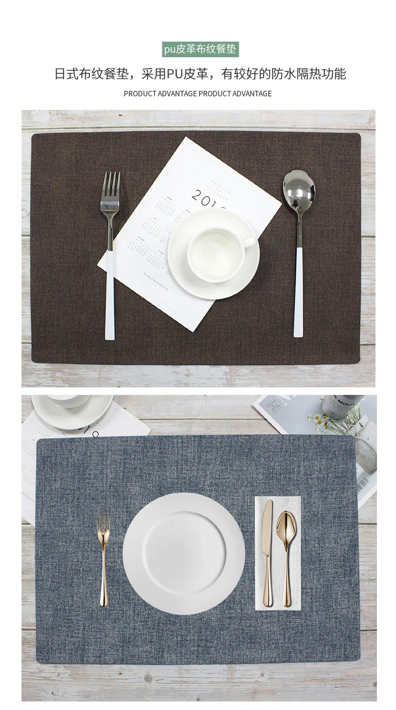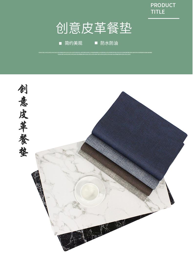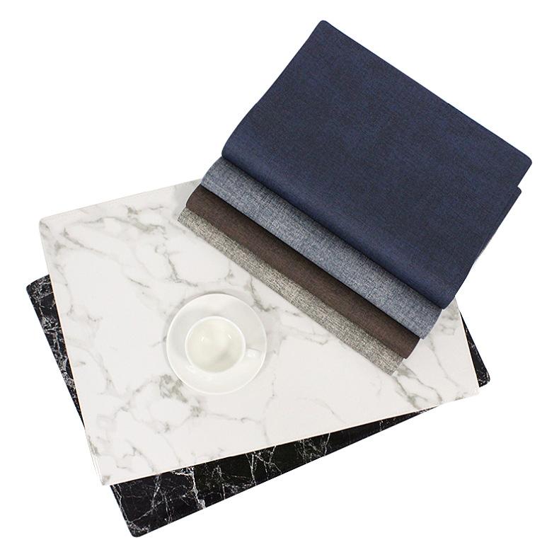 Mantel individual con patrón de tela de cuero PU simple, mantel individual cuadrado jaspeado creativo, mantel de mesa aislante a prueba de aceite para el hogar y el hotel