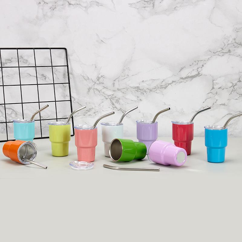 Termo de acero inoxidable 304 transfronterizo, mini termo de 2 oz, protección contra el frío, taza de hielo, taza portátil para automóvil, taza con tubo de succión
