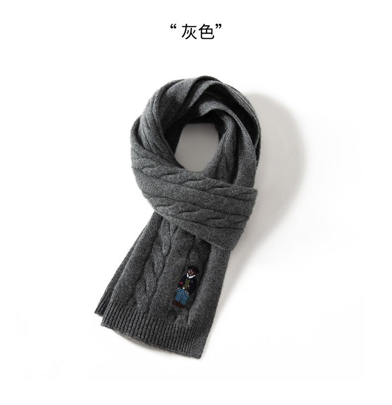 Bufanda bordada estilo coreano para mujer, invierno, para niña, bonita, combinable, de lana de color liso, tejida, protección para el cuello, para pareja