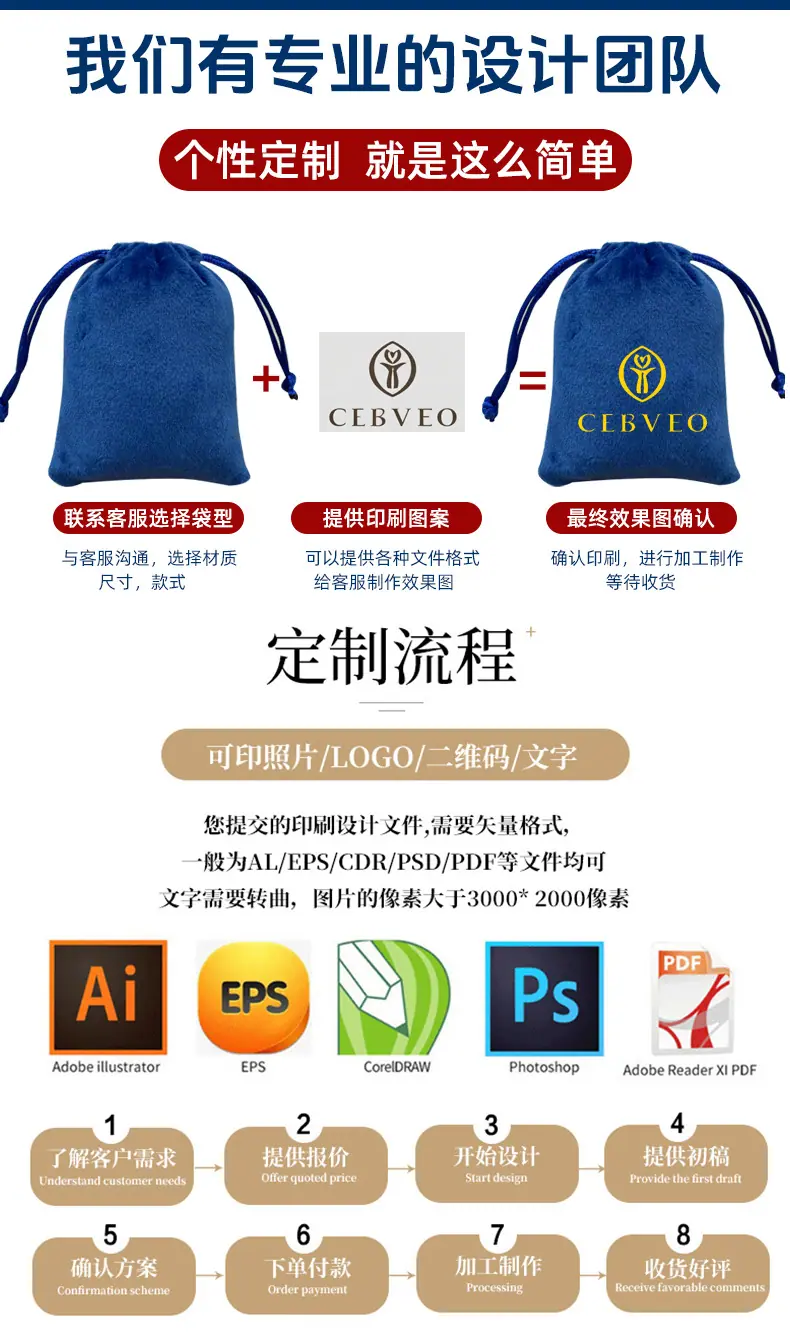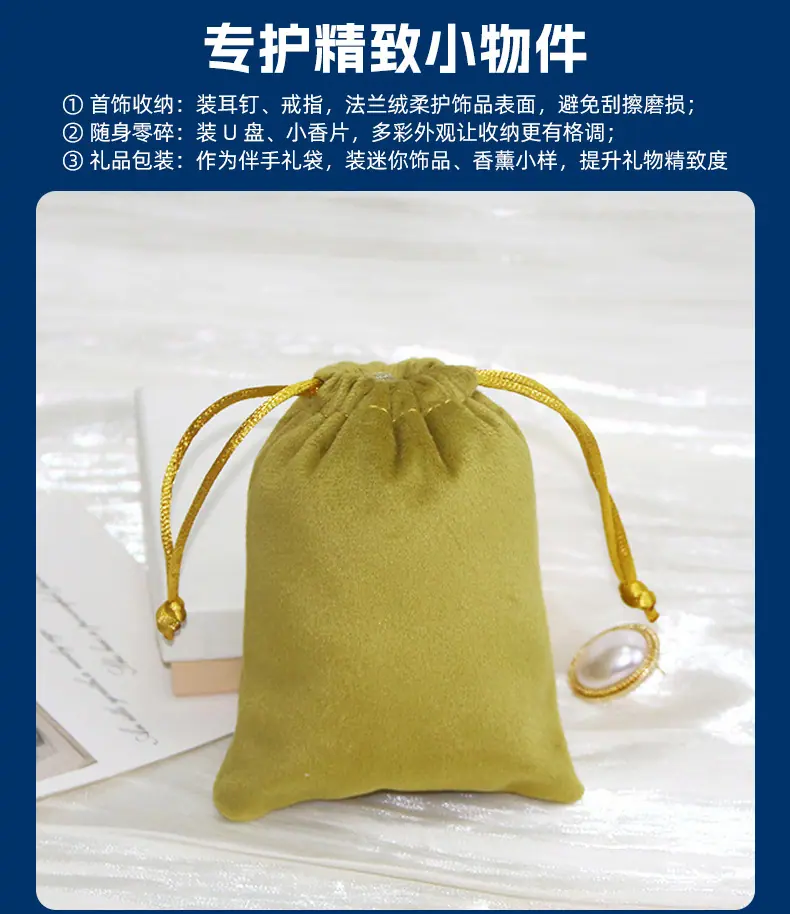 Bolsa de terciopelo al por mayor Bolsa de terciopelo para joyería Bolsa con cordón para guardar auriculares Bolsa de regalo Bolsa con cordón Bolsillo con solapa Pantalones