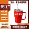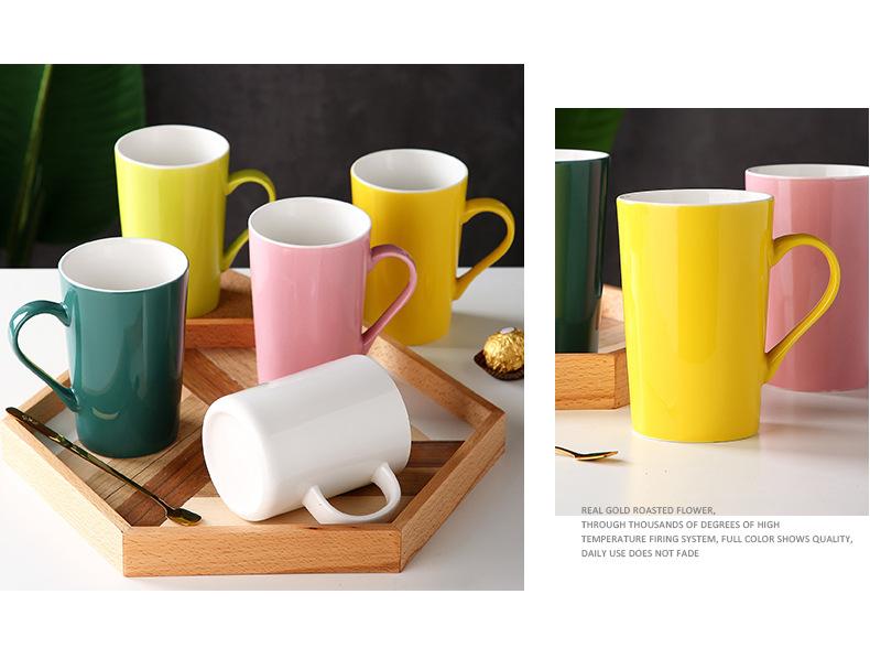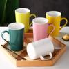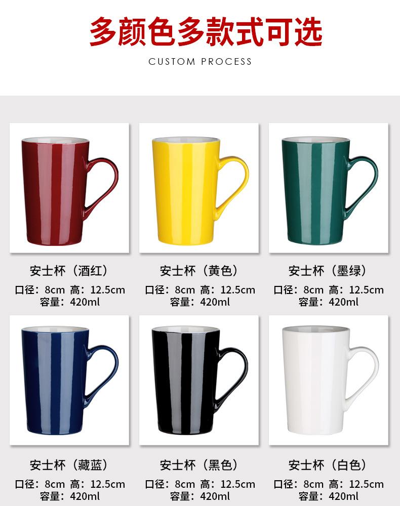 Taza de cerámica con logotipo fijo, taza de café de regalo, taza de agua de oficina con tapa y cuchara, taza de esmalte de color simple con impresión