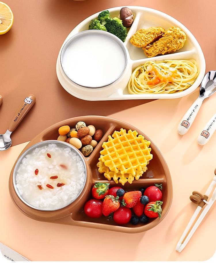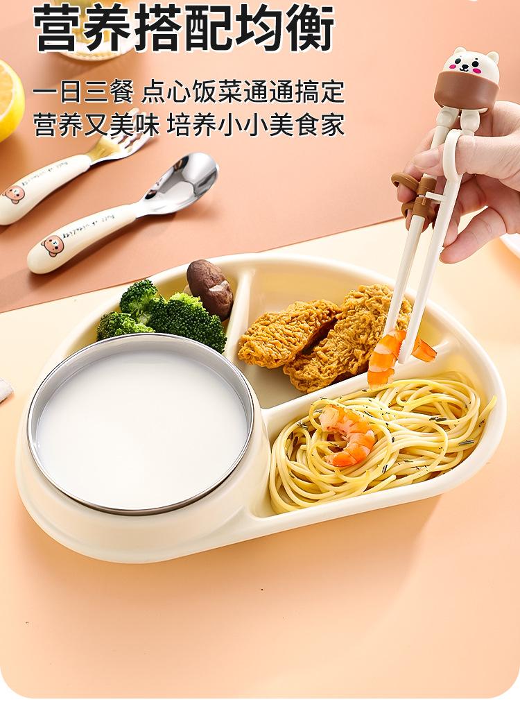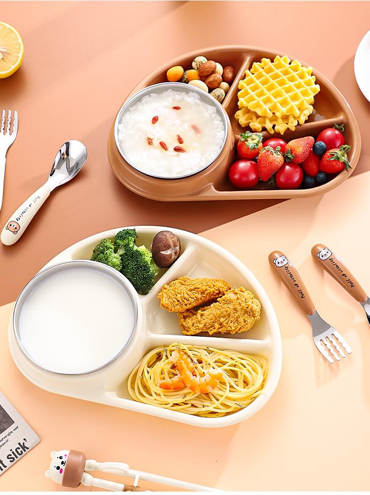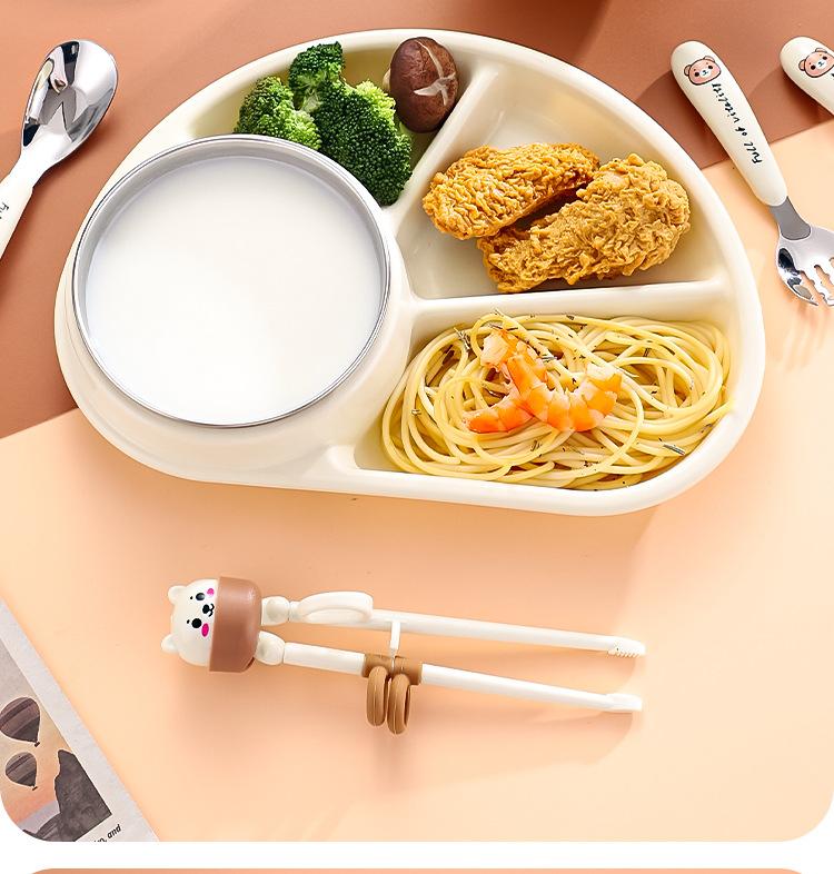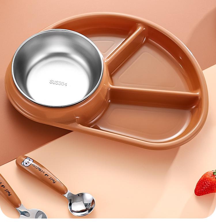 Plato de cena infantil de acero inoxidable 304, de polipropileno dividido, anticaídas, para aprendizaje de bebés, vajilla complementaria, venta al por mayor