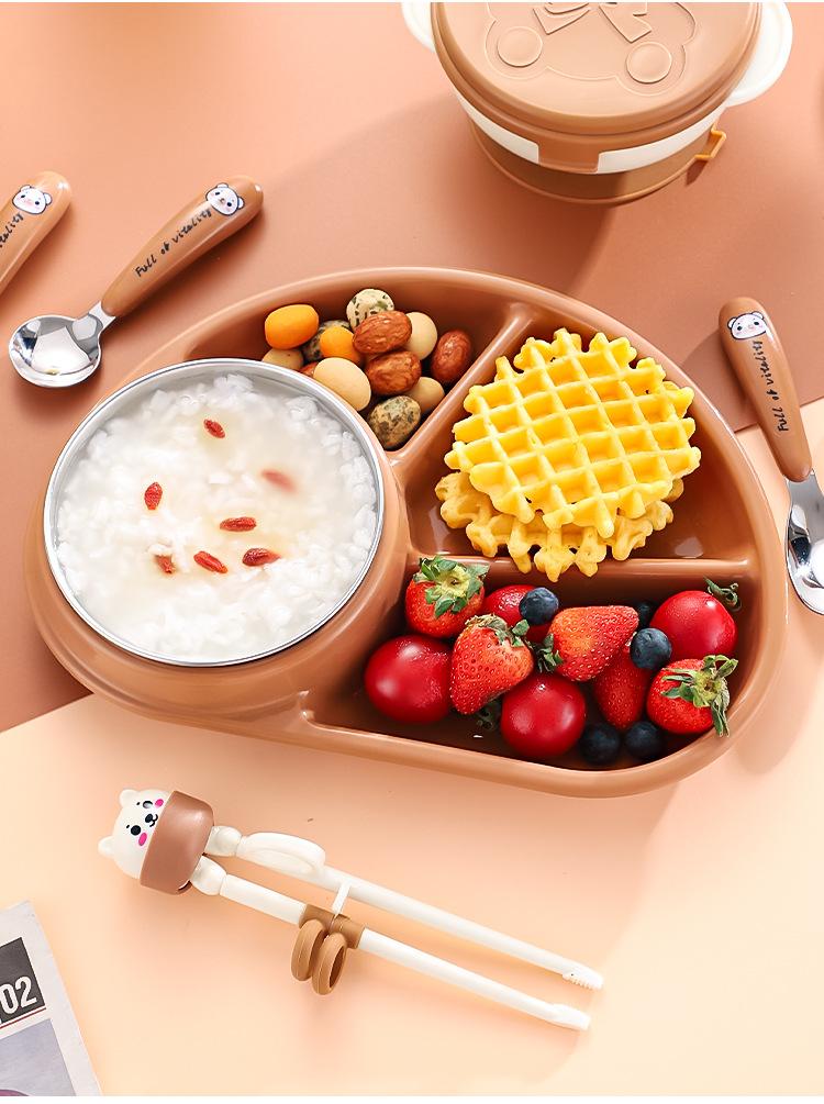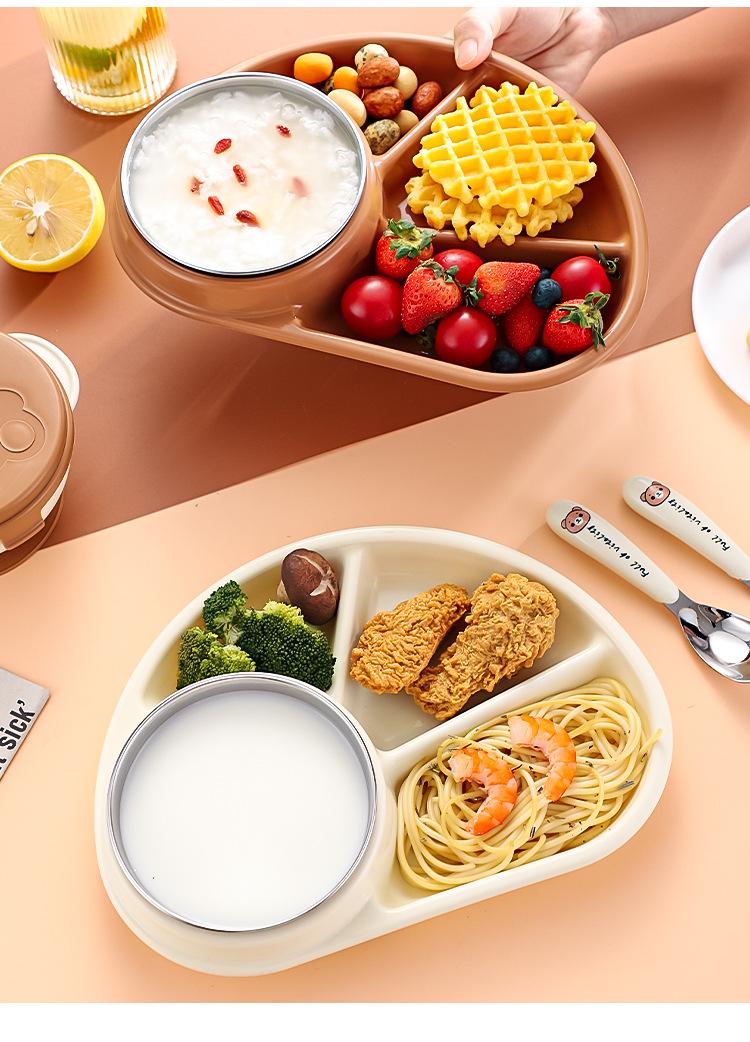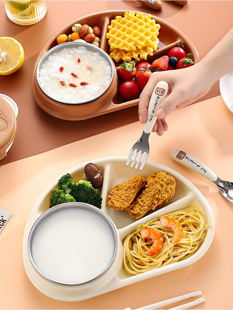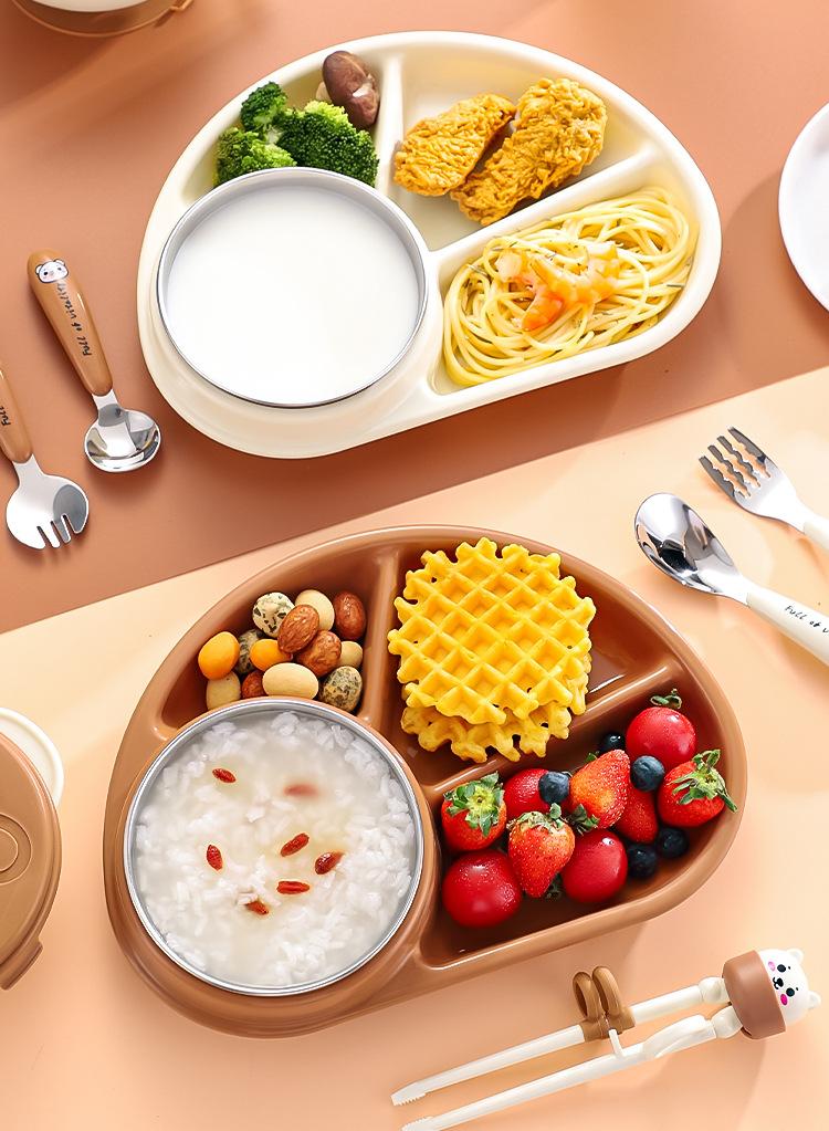 Plato de cena infantil de acero inoxidable 304, de polipropileno dividido, anticaídas, para aprendizaje de bebés, vajilla complementaria, venta al por mayor