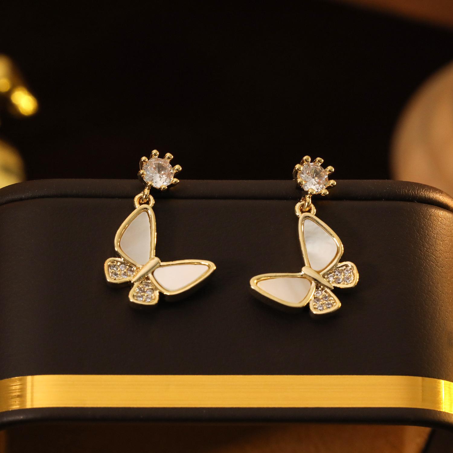 Marca: Concha de mariposa pequeña circonita nuevo verano nuevos aretes