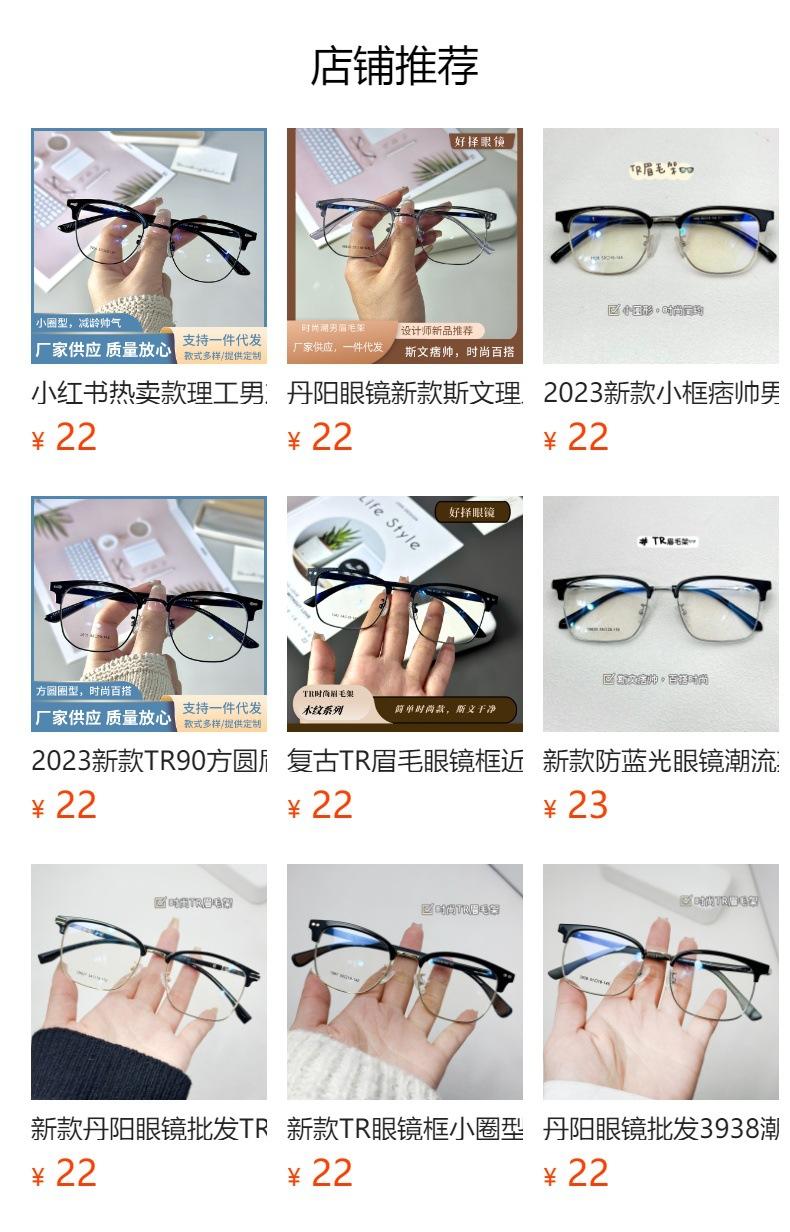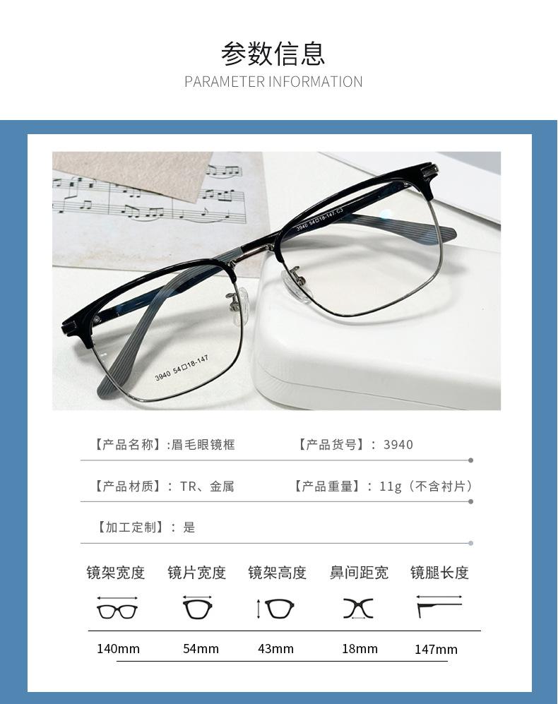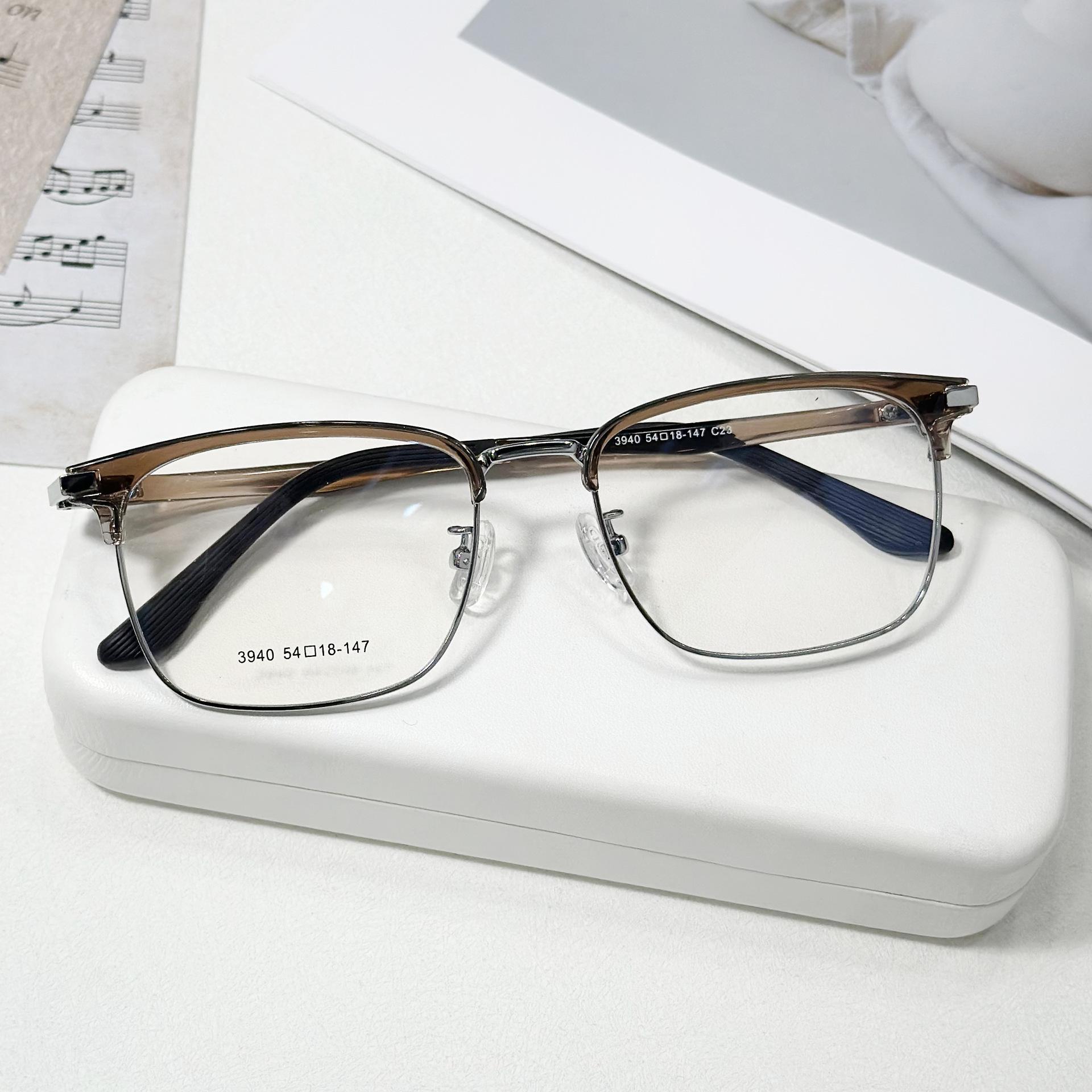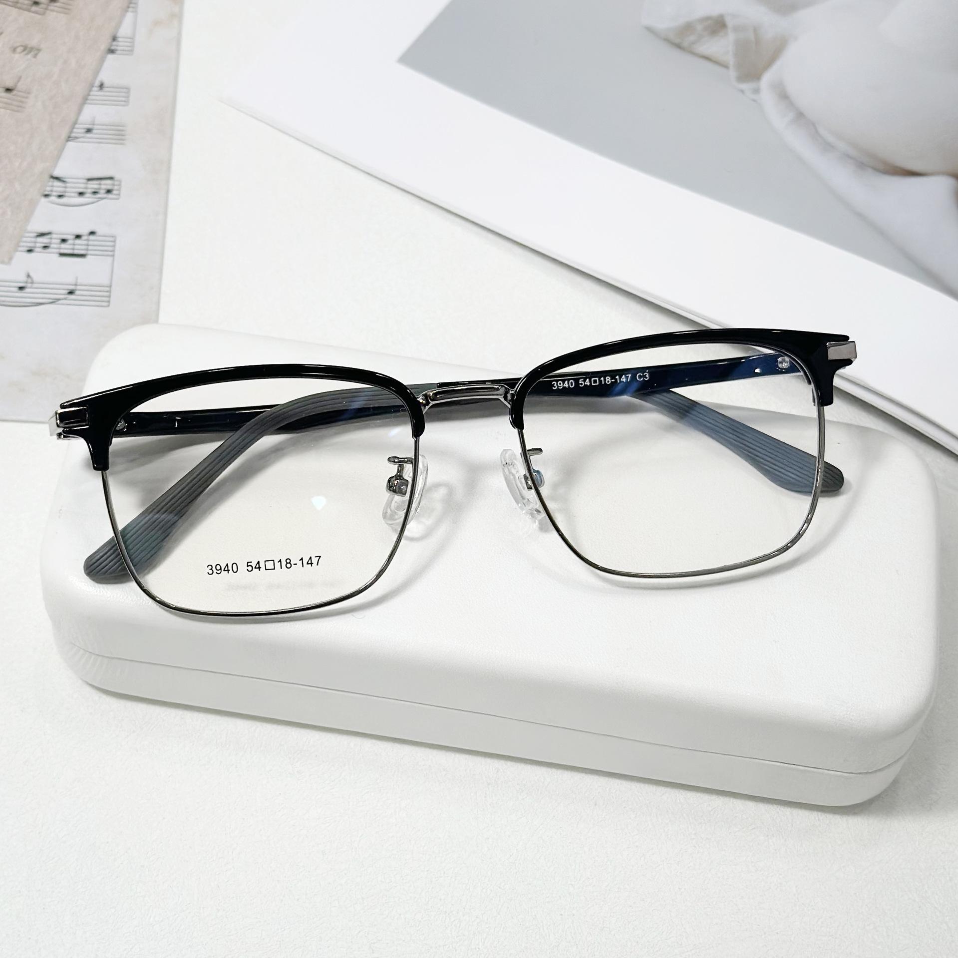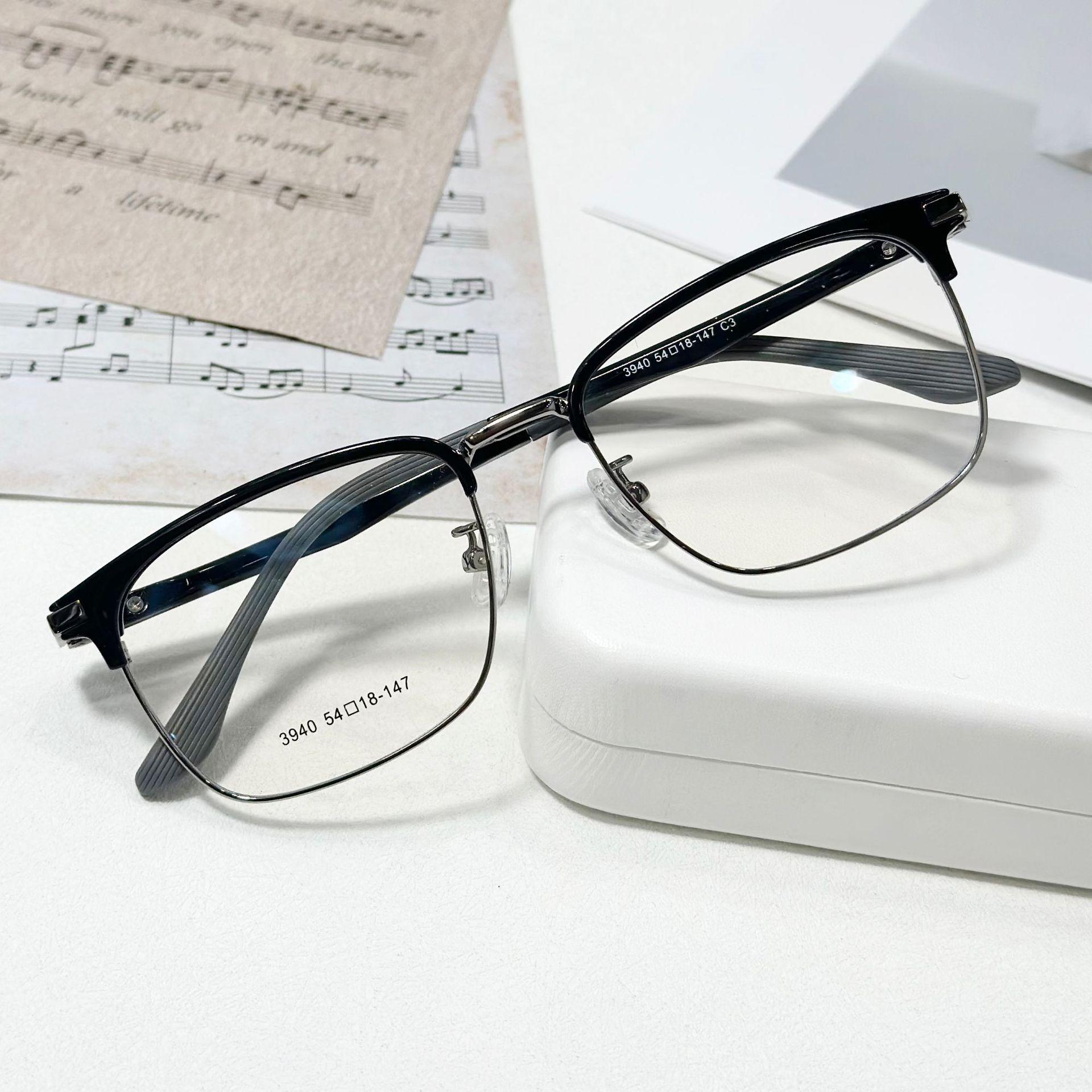 Gafas sencillas personalizadas para hombre, gafas planas antiluz azul, montura Danyang, montura estilo ceja, gafas versátiles para miopía.