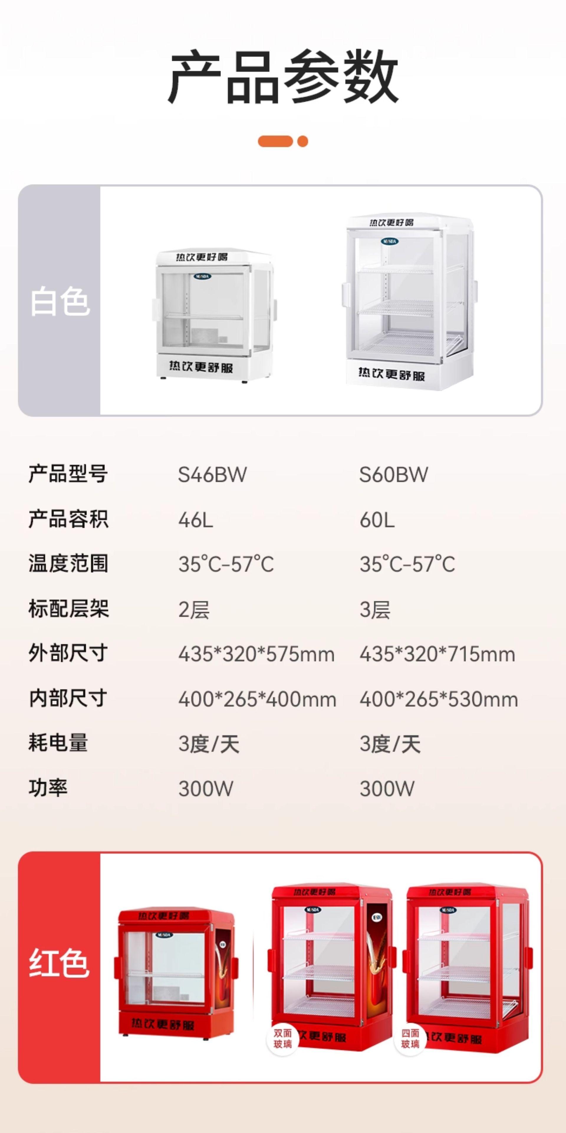 46l warming cabinet white-4-sided glass/mechanical temperature control