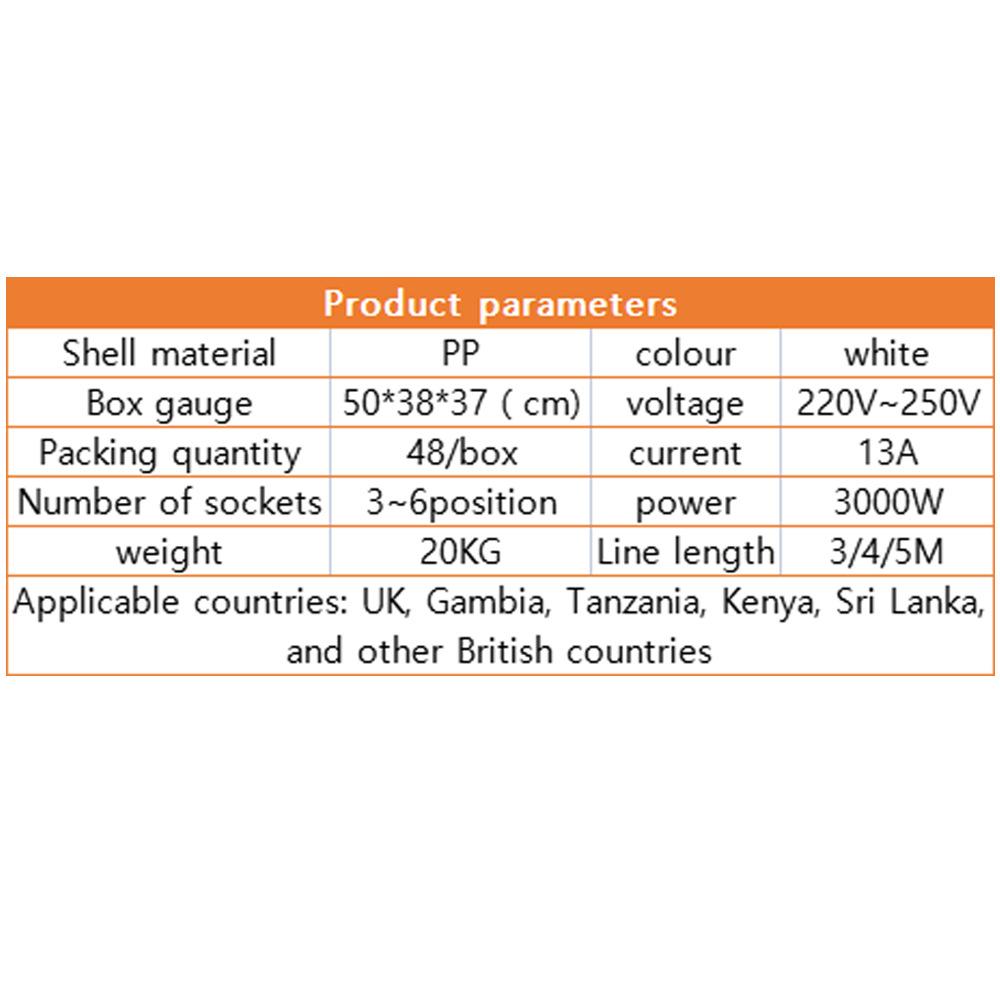 Nombre del producto: Venta directa de fábrica Regleta de alimentación iluminada de cuatro vías estándar británico, toma de cableado, placa de extensión 1004
