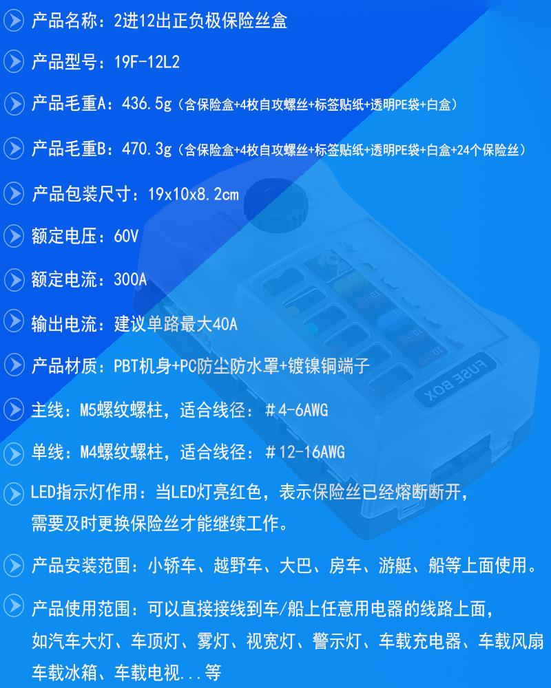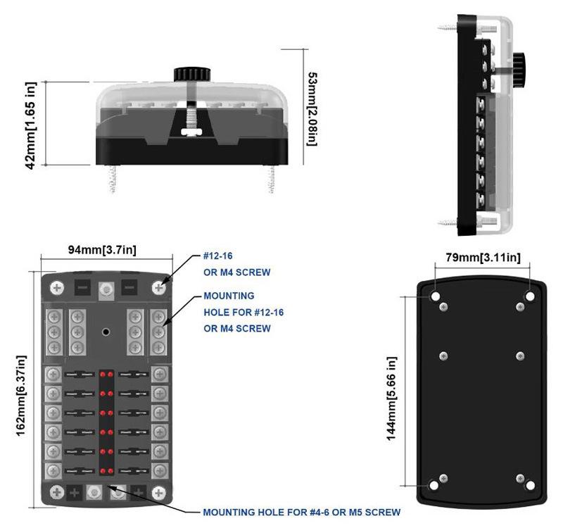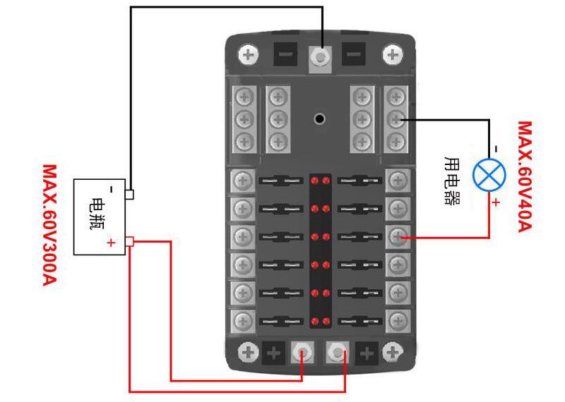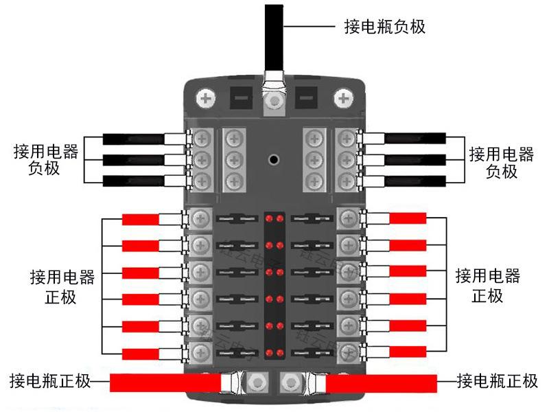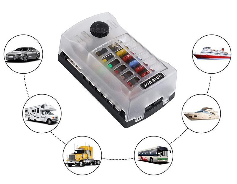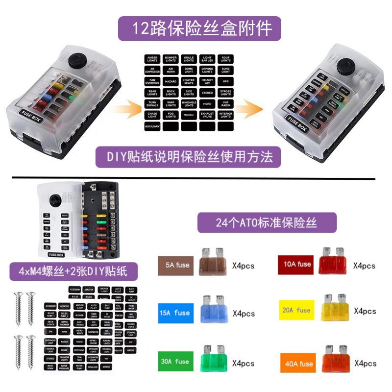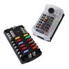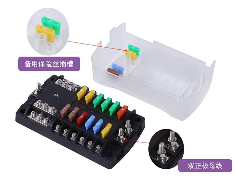 Caja de fusibles para automóvil de 12 vías con polo negativo y polo positivo doble, fusible de inserción media, caja de fusibles de cubierta alta