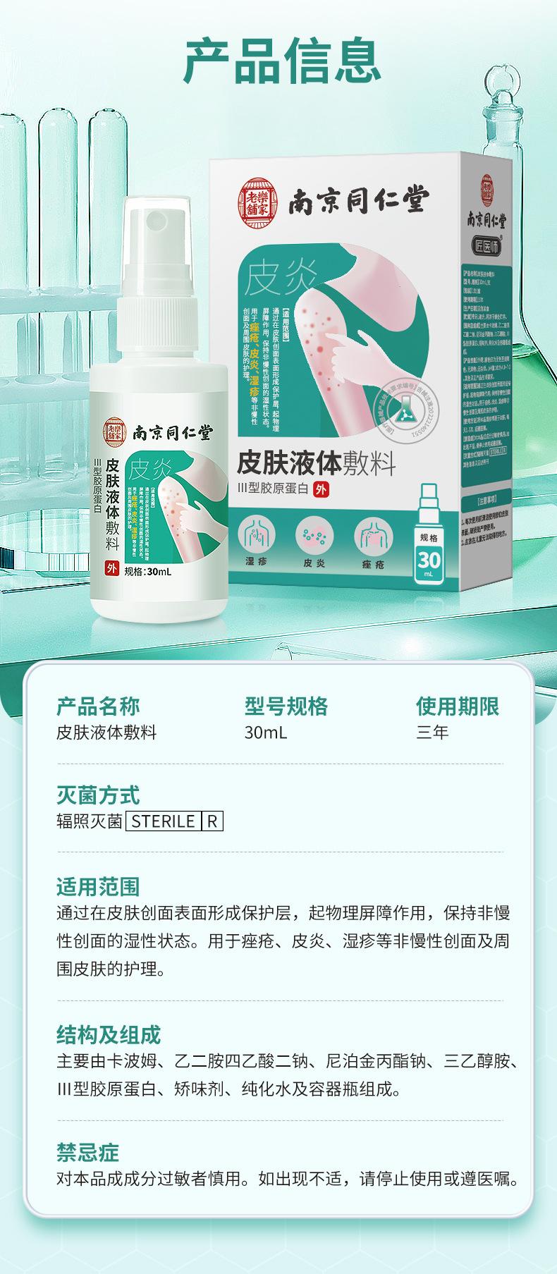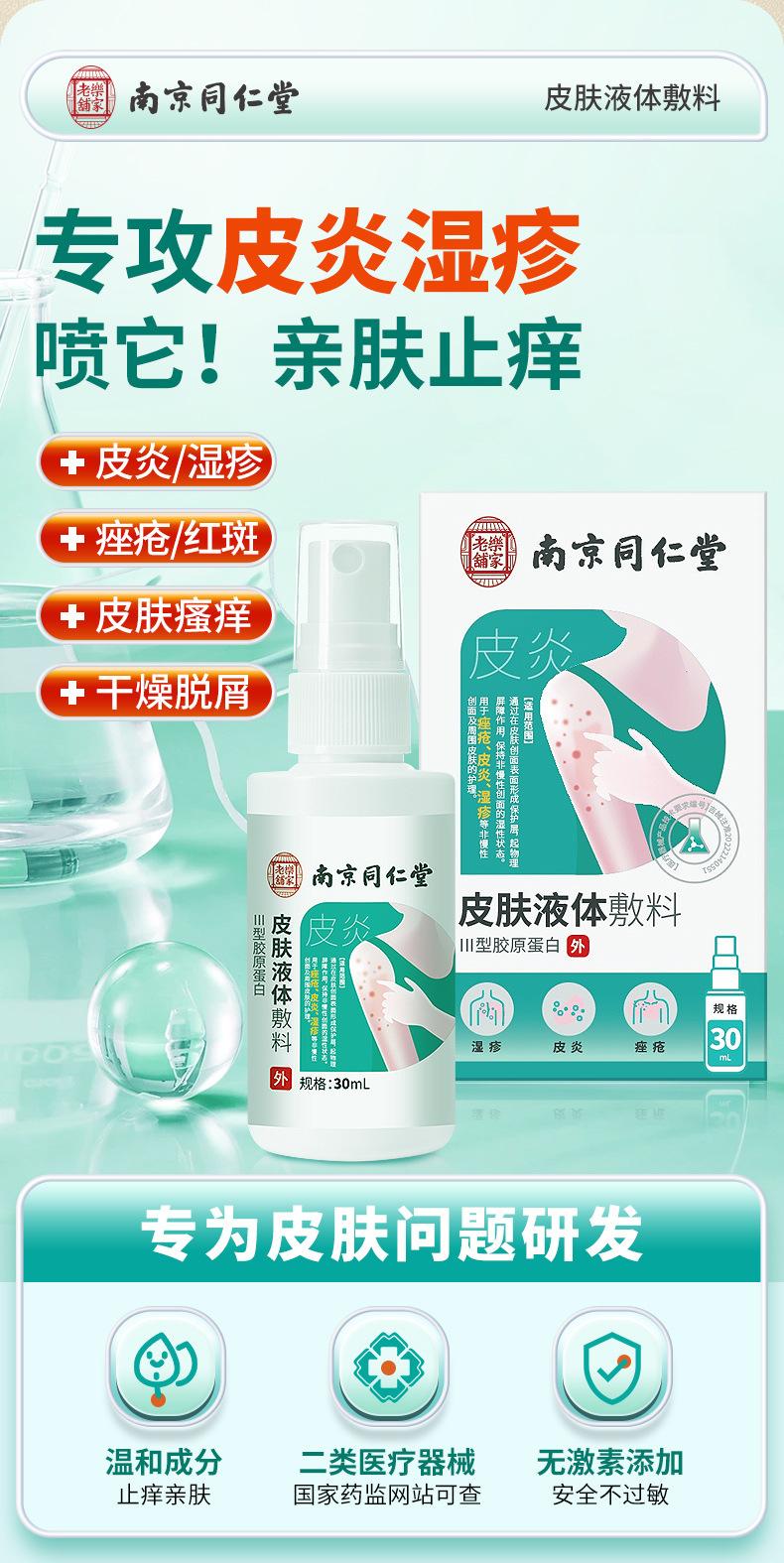 Nanjing Tongrentang Aderezo Líquido Médico para la Piel Eczema Dermatitis Acné Descamación Seca Picazón Privada Crema Antipruriginosa Spray