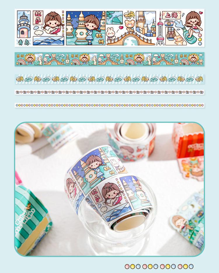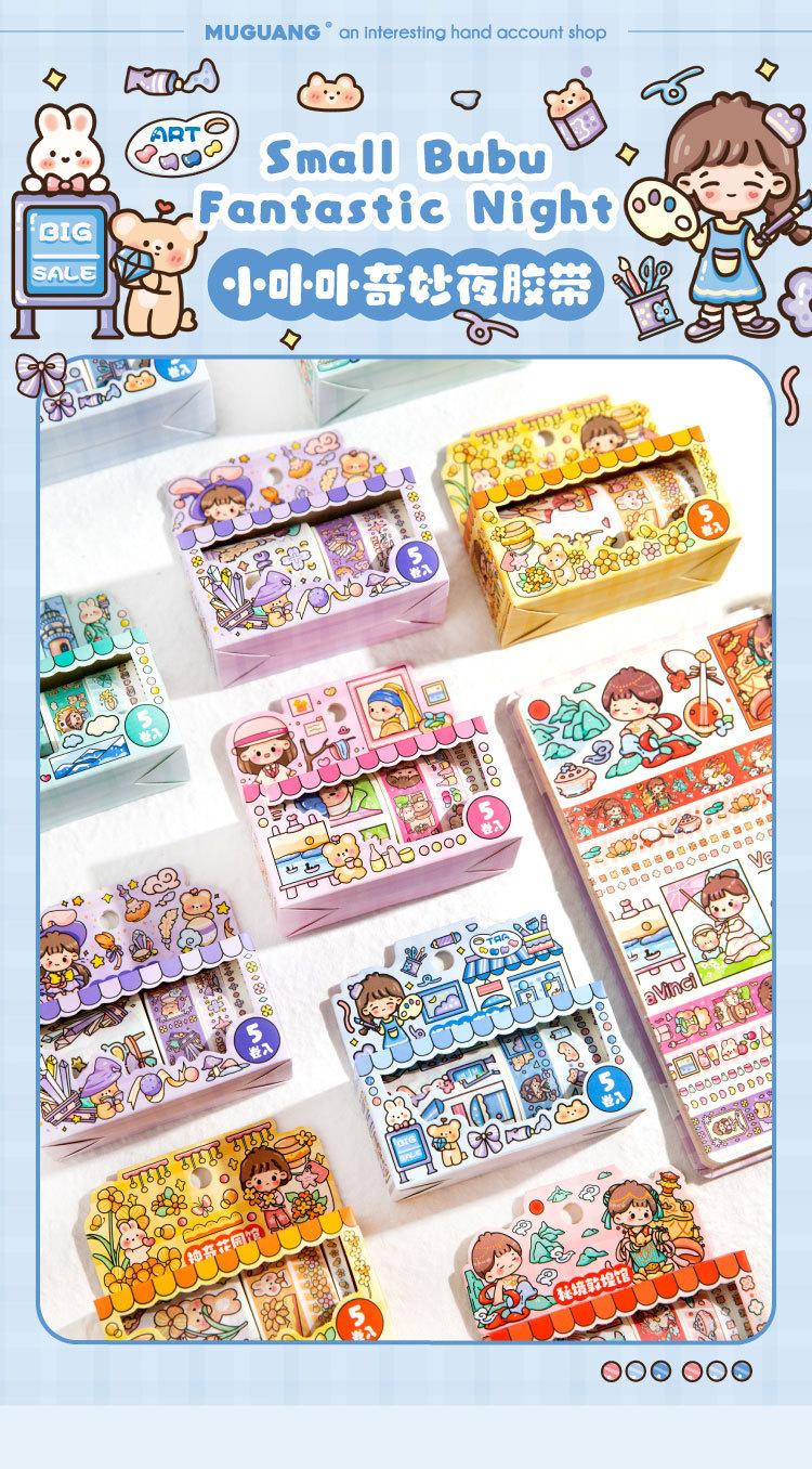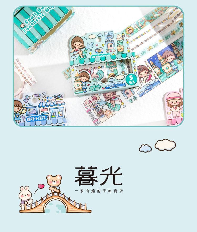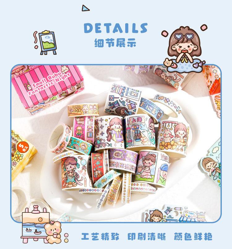 Set de Washi Tape Ciudad Crepúsculo Serie Noche Maravillosa Little Pupu Material de Collage para Diario Ins Hecho a Mano Dunhuang