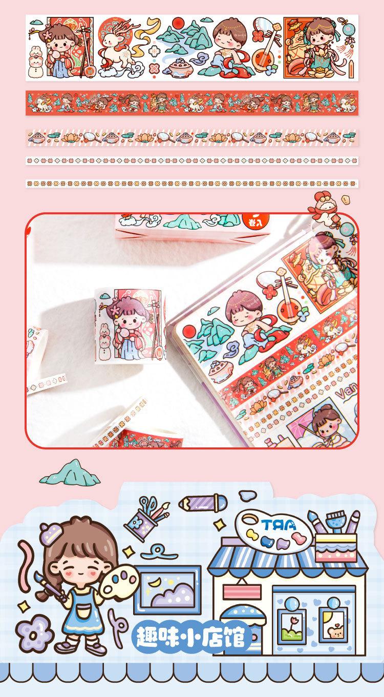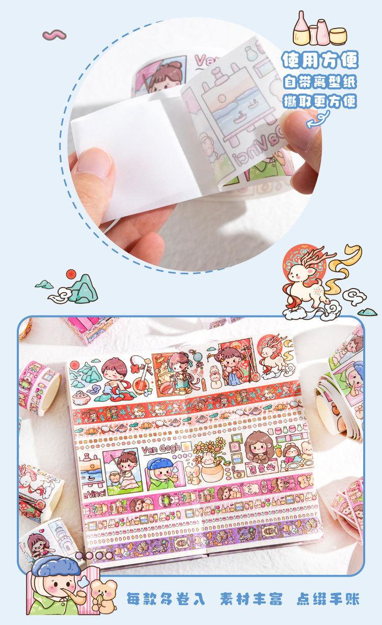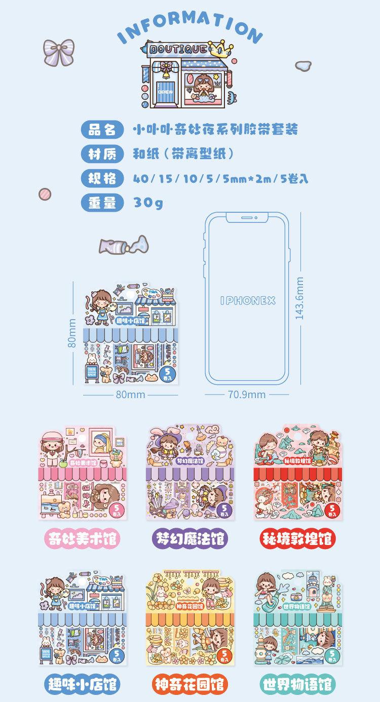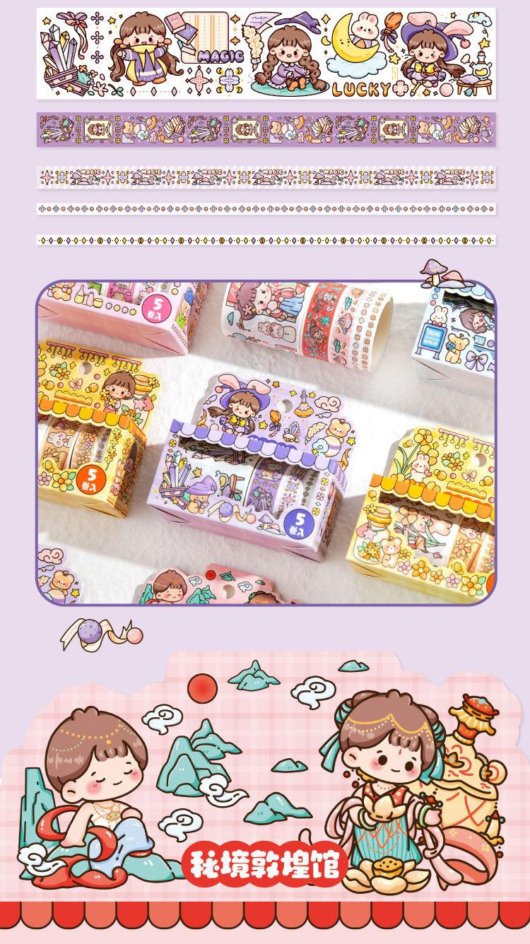 Set de Washi Tape Ciudad Crepúsculo Serie Noche Maravillosa Little Pupu Material de Collage para Diario Ins Hecho a Mano Dunhuang
