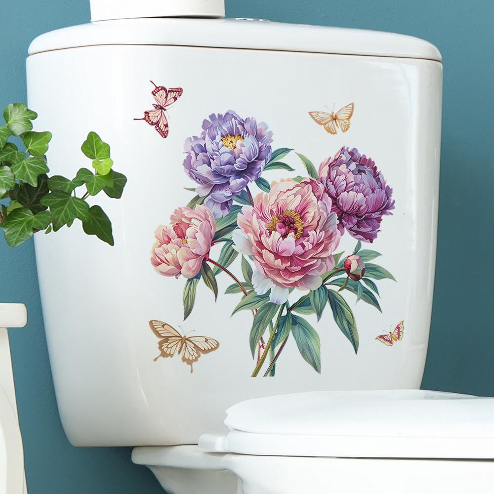 Comercio exterior flores de peonía mariposa dormitorio sala de estar porche dormitorio decoración del hogar pegatinas de pared autoadhesivas venta al por mayor transfronterizo