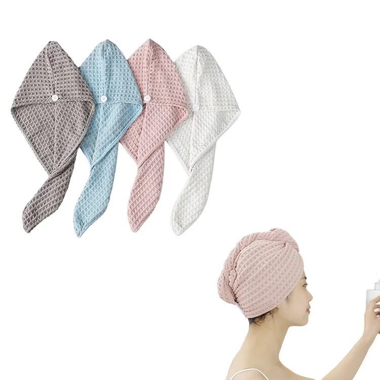 Especialista transfronterizo en gorros de secado rápido para cabello, de estilo europeo y americano, con tejido tipo gofre, superabsorbentes, de secado rápido, turbantes de microfibra, toallas para cabello seco y gorros de ducha.