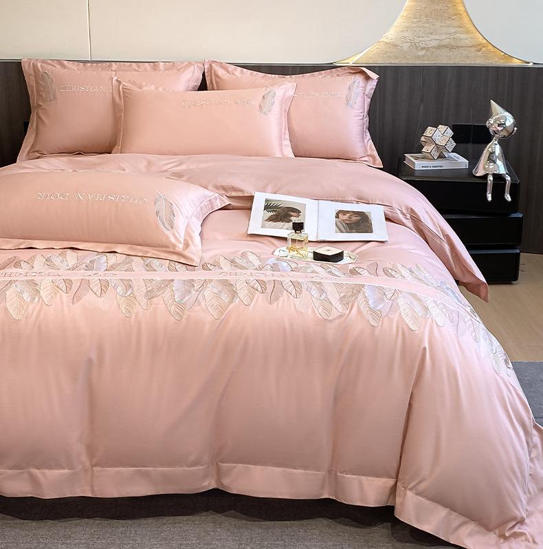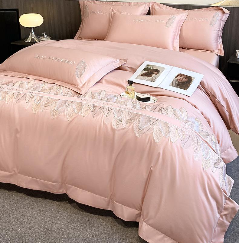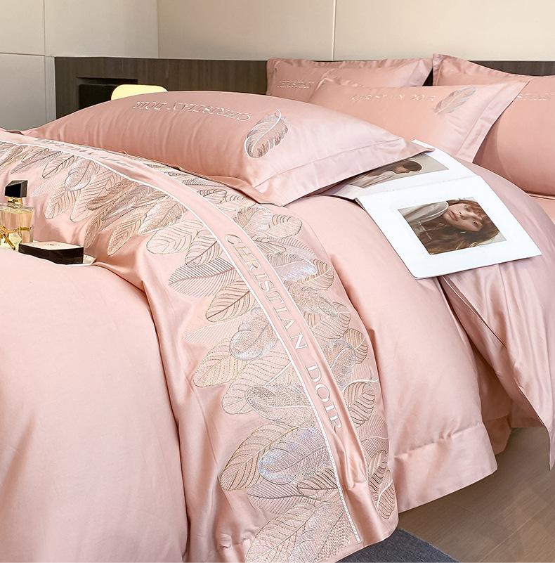 Ropa de cama de algodón bordado de cuatro piezas de algodón de fibra larga de lujo de alta calidad, regalos al por mayor