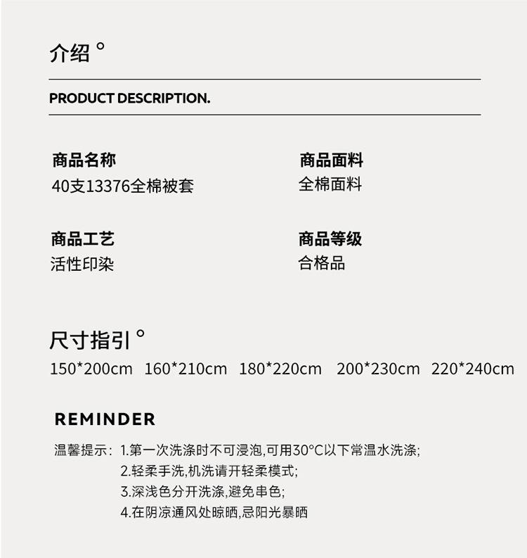 Quilt cover 150*200cm, Quilt cover 160*210cm, Quilt cover 180*220cm, Quilt cover 200*230cm, Quilt cover 220*240cm