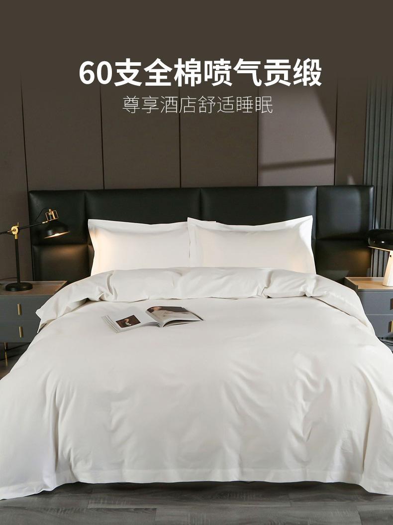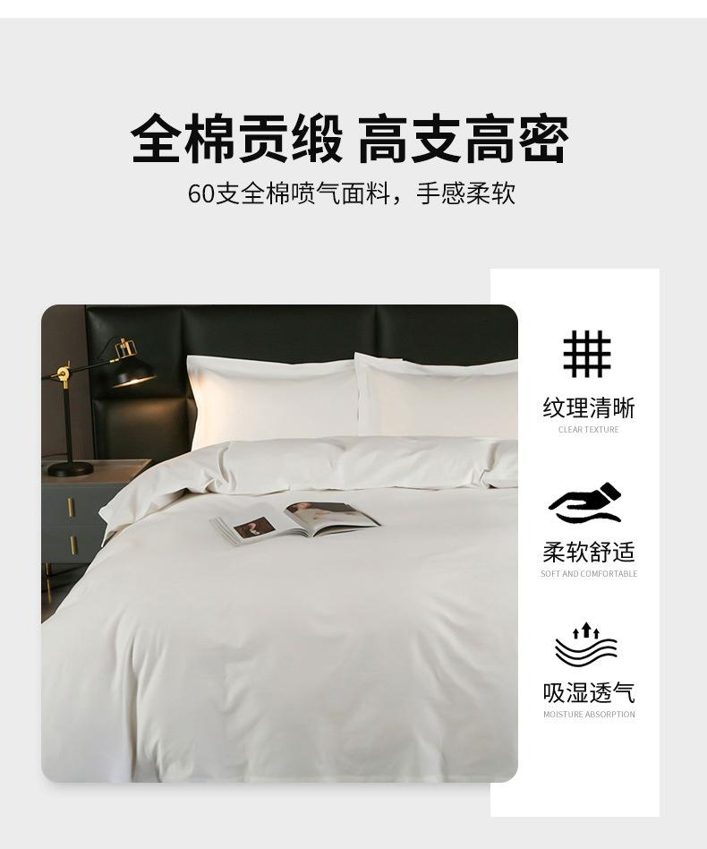 Juego de cama de hotel de cuatro piezas de cinco estrellas de algodón puro blanco, funda de edredón para hotel, sábanas, ropa de cama, ropa de cama de hotel