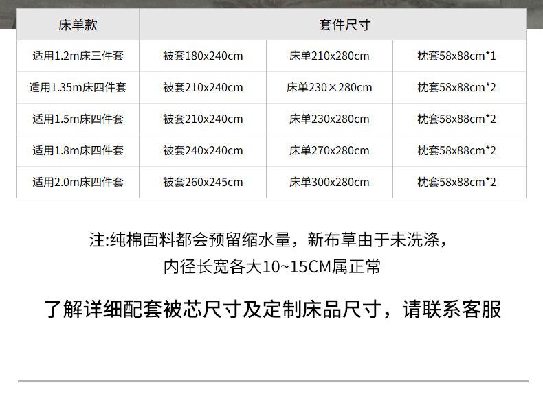 1.2m bed three-piece set (quilt cover 180*240cm, sheets 200*280cm, pillowcase 58*88cm), 1.35m bed set of four ...