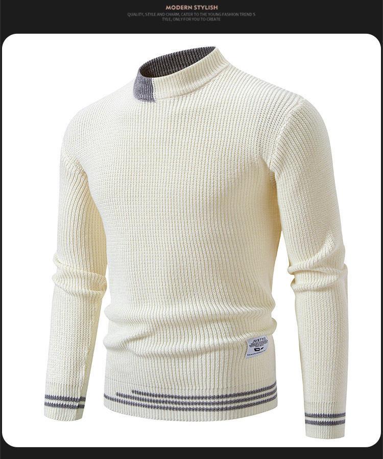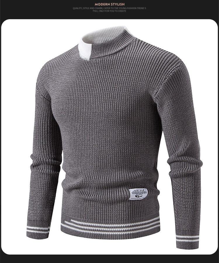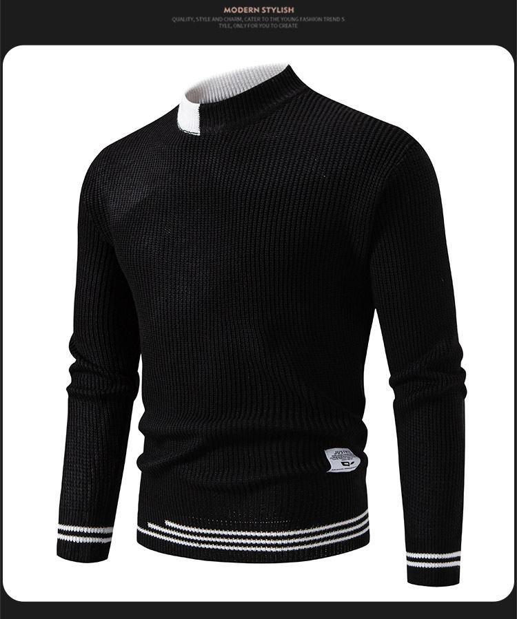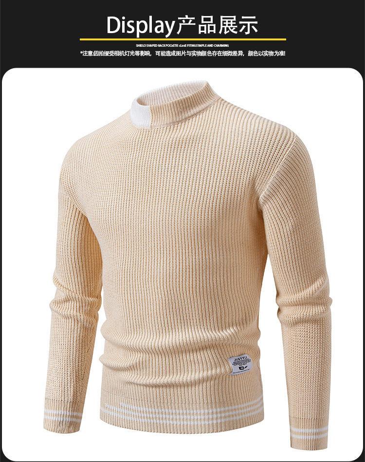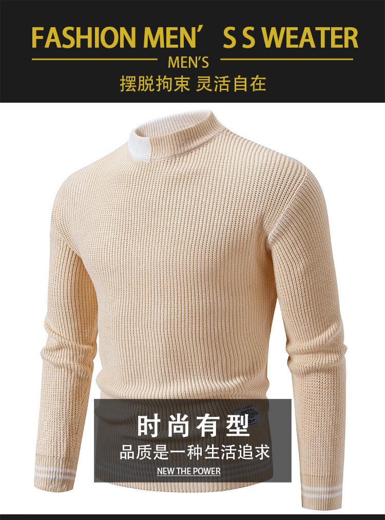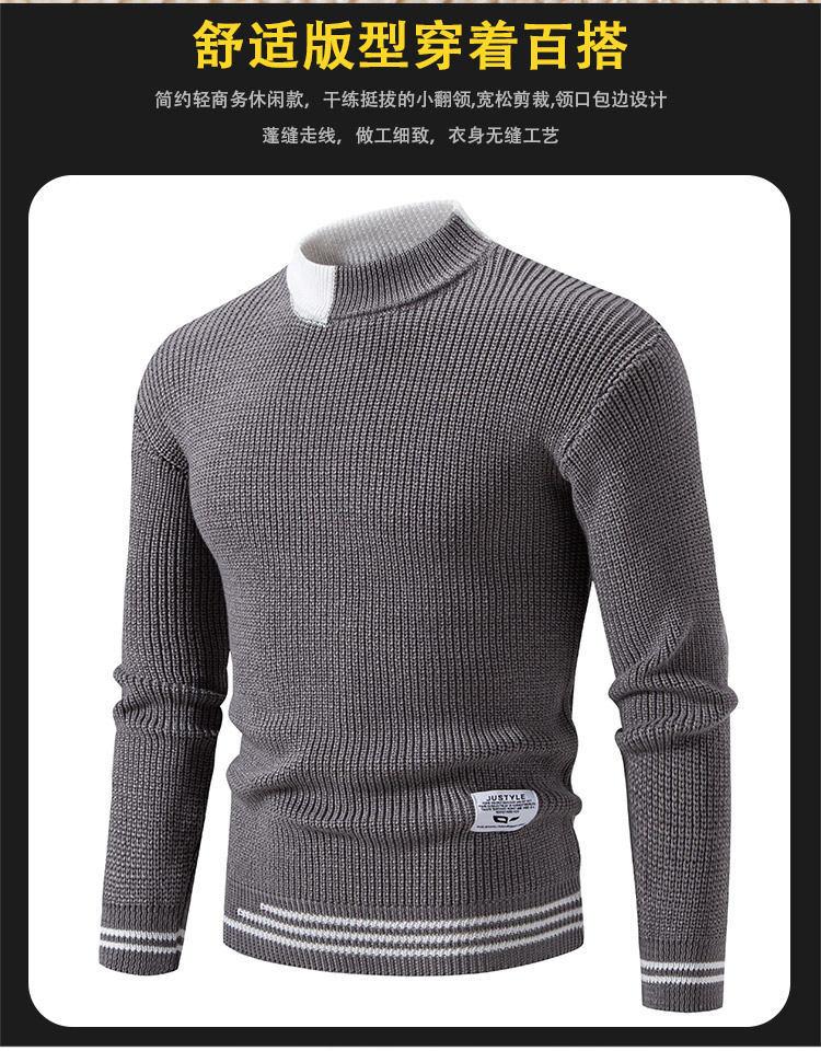 Suéter de hombre nuevo 2024, comercio exterior, Amazon, otoño e invierno, cuello alto medio, contraste, moda, suéter casual suelto para hombre