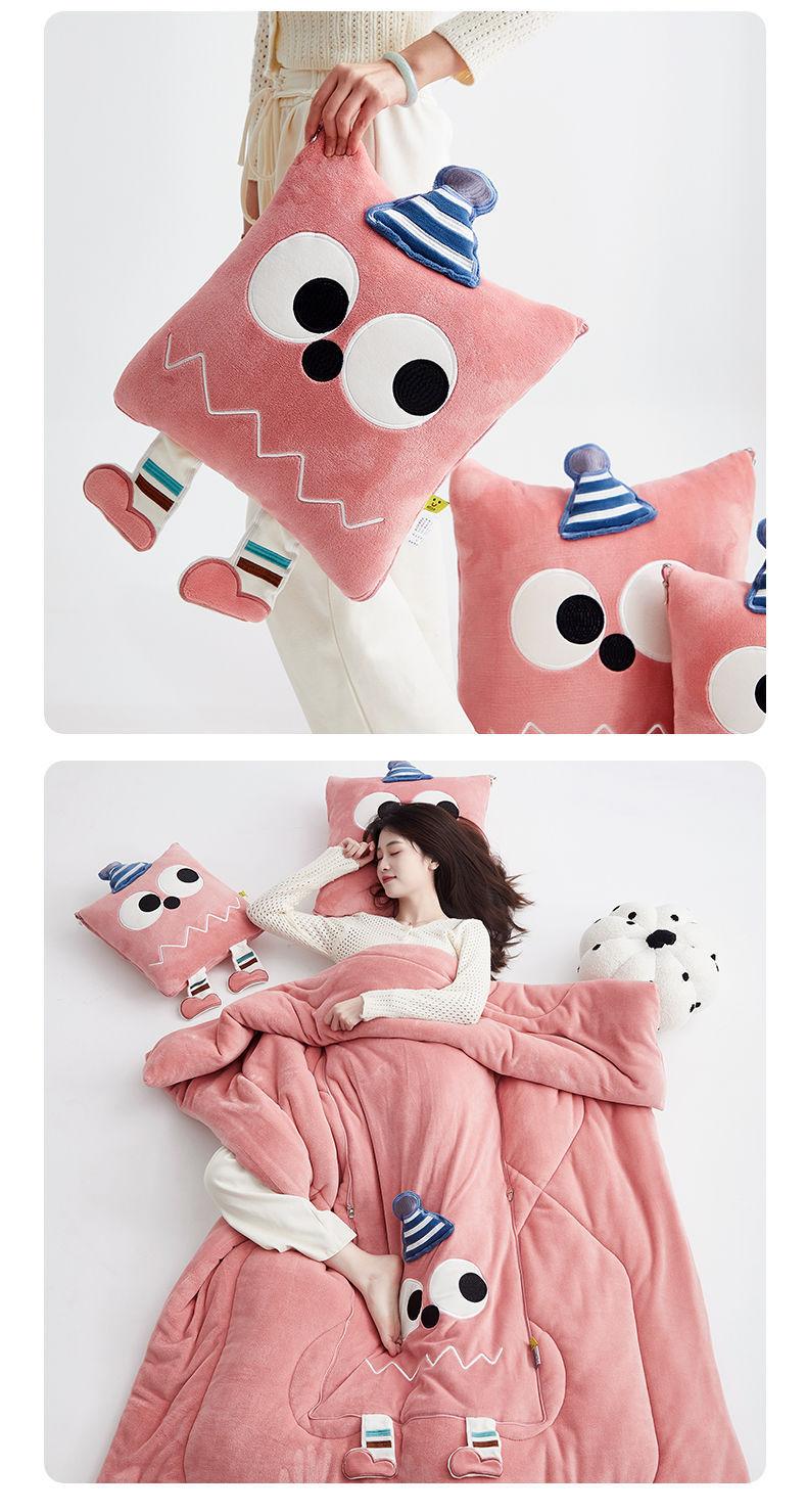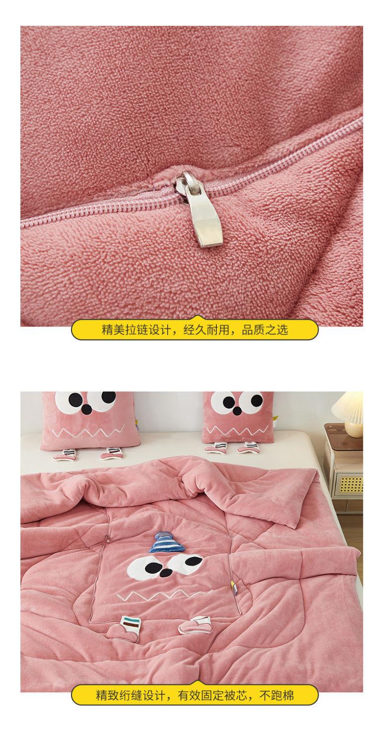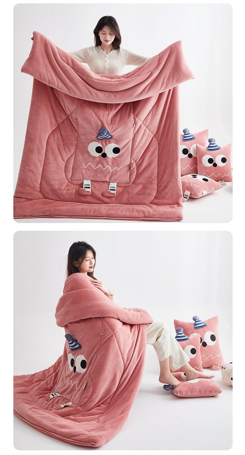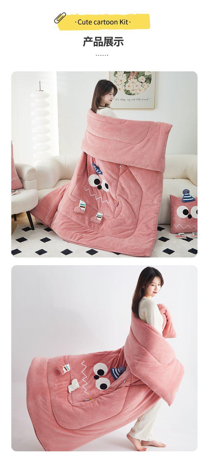 Edredón de almohada de dibujos animados de invierno, edredón de almohada de terciopelo de leche caliente engrosado, manta de siesta multifuncional de oficina plegable