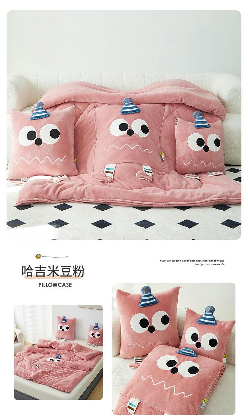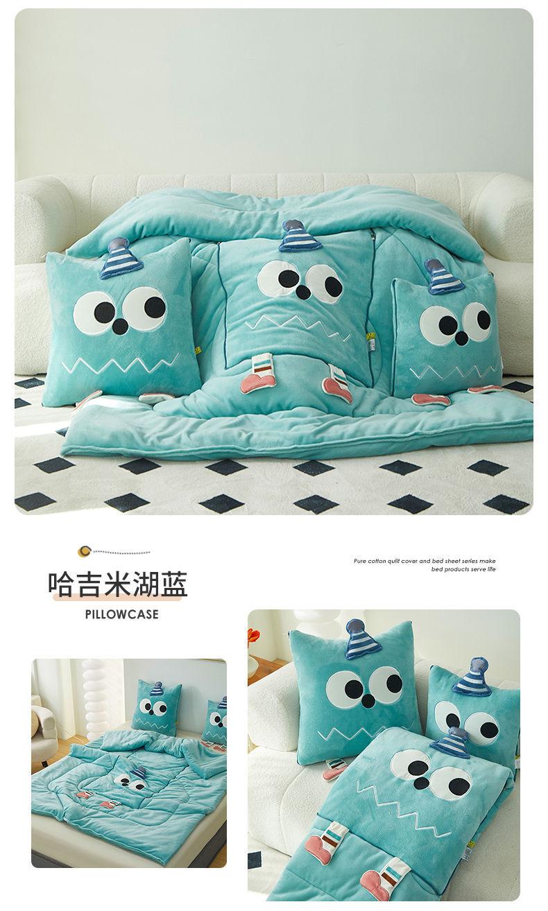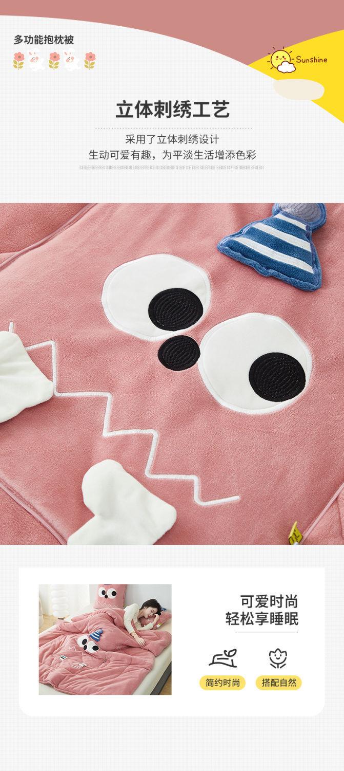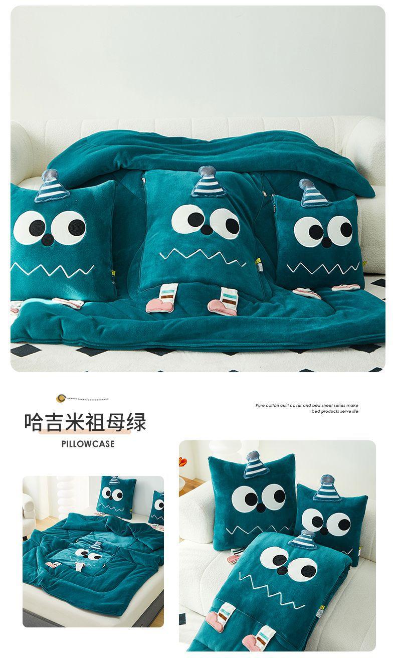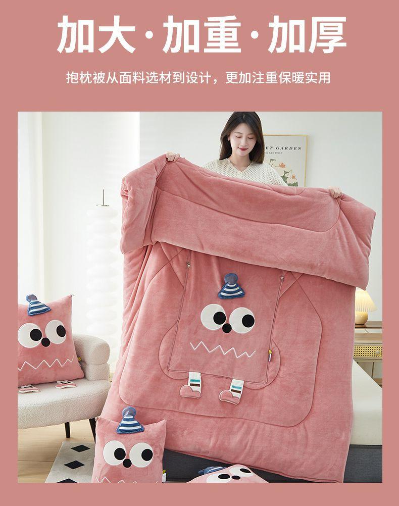 Edredón de almohada de dibujos animados de invierno, edredón de almohada de terciopelo de leche caliente engrosado, manta de siesta multifuncional de oficina plegable
