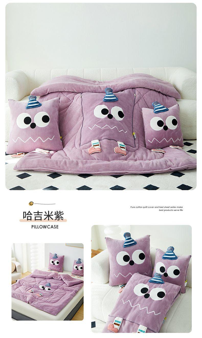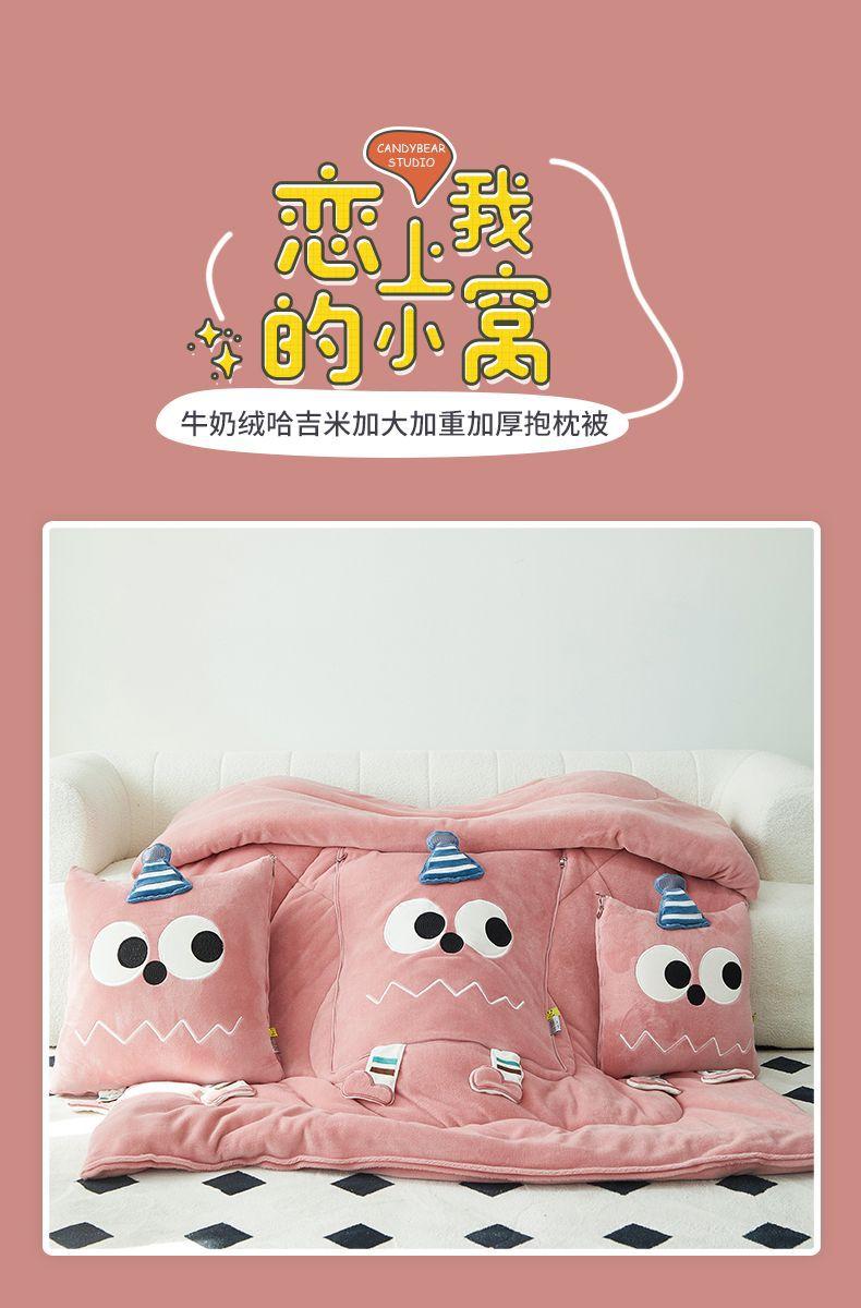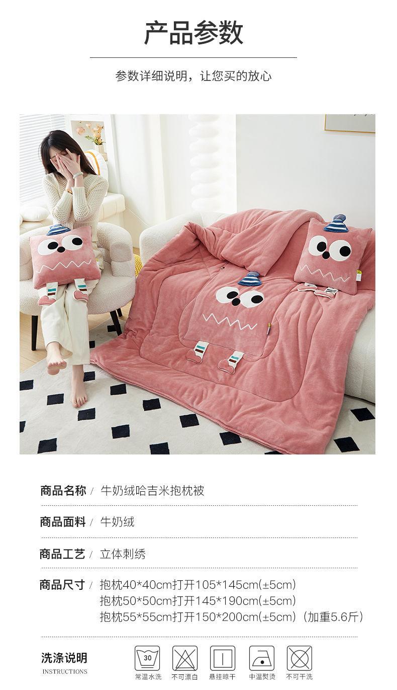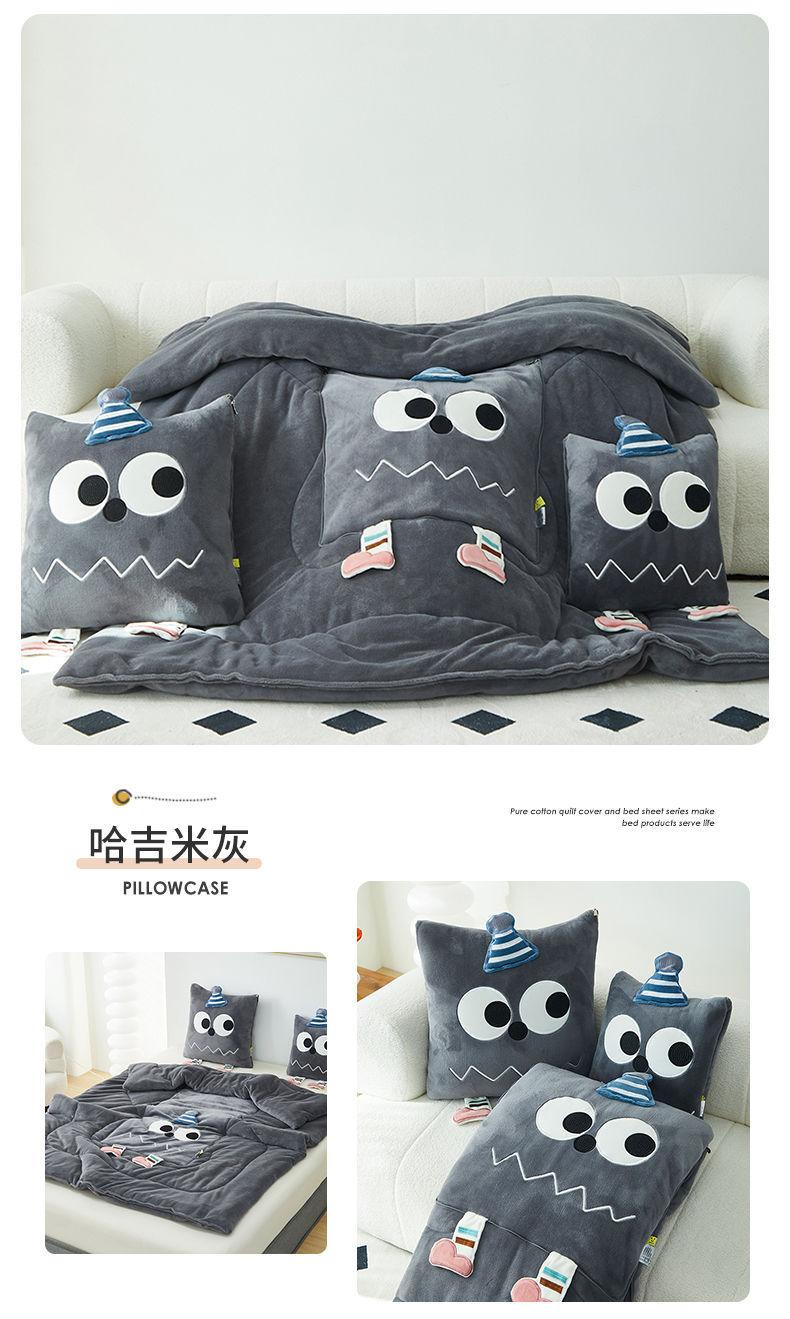 Edredón de almohada de dibujos animados de invierno, edredón de almohada de terciopelo de leche caliente engrosado, manta de siesta multifuncional de oficina plegable