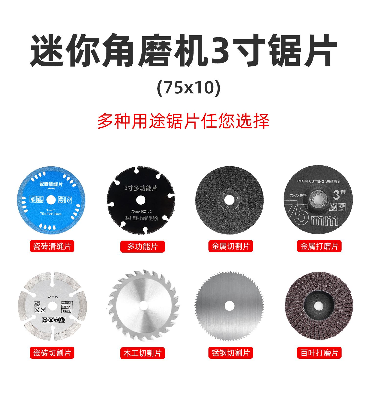 Mini amoladora angular de 3 pulgadas, hoja de sierra de corte de 75 mm, hoja de sierra para baldosas, madera, metal, muela abrasiva, hoja de amolar