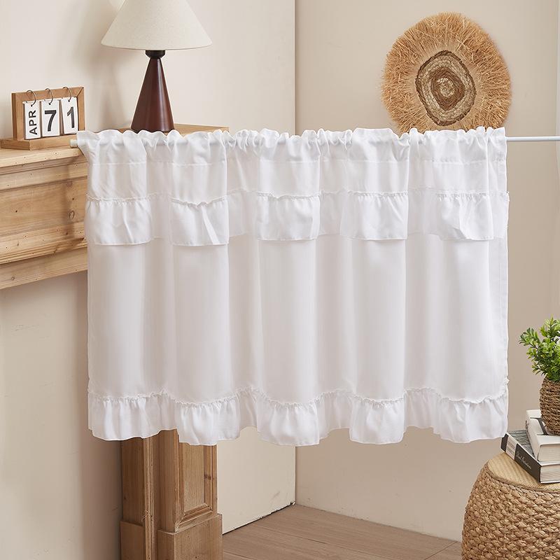 Nueva Cortina de Partición de Cocina de Hilo Fantasma Blanco Americano Cortina de Café Cortina de Puerta Cortina Corta para Ventana Mirador Media Cortina Decorativa para Gabinete