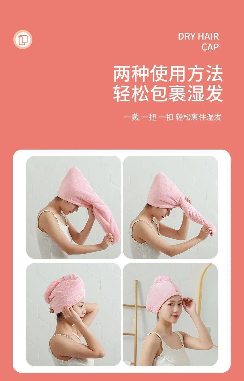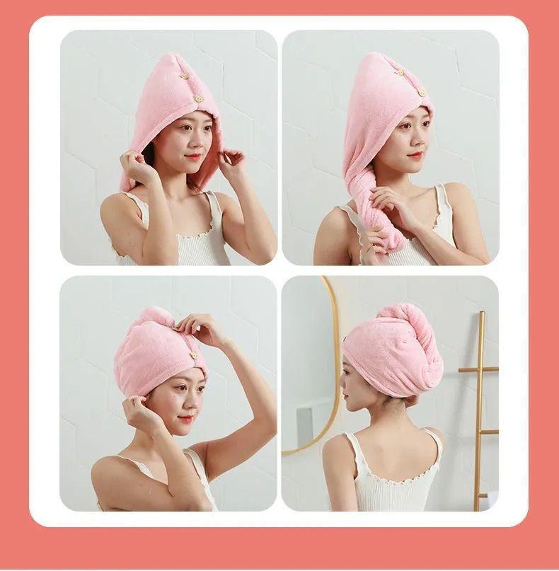 Gorro para cabello seco, gran absorción de agua, secado rápido, toalla para secar el cabello, turbante grueso de doble capa, gorro de ducha, bonito gorro para el cuidado del cabello.