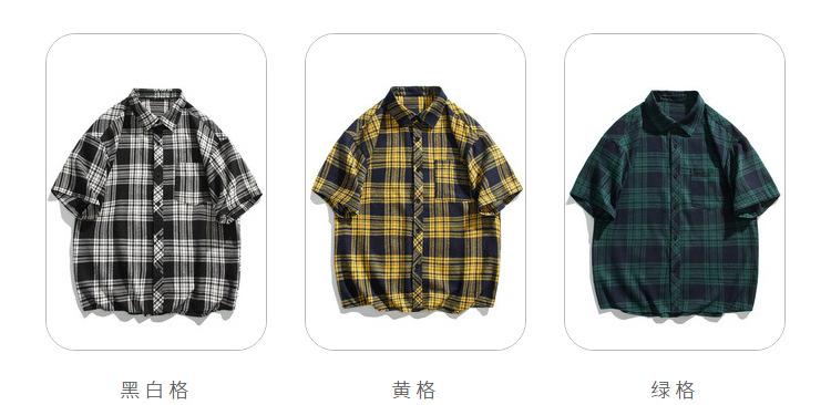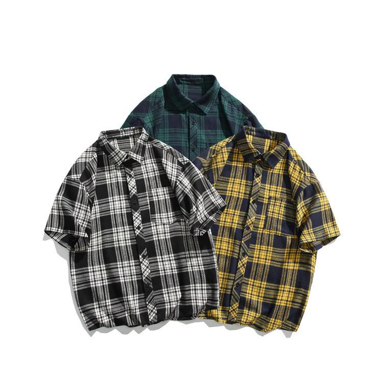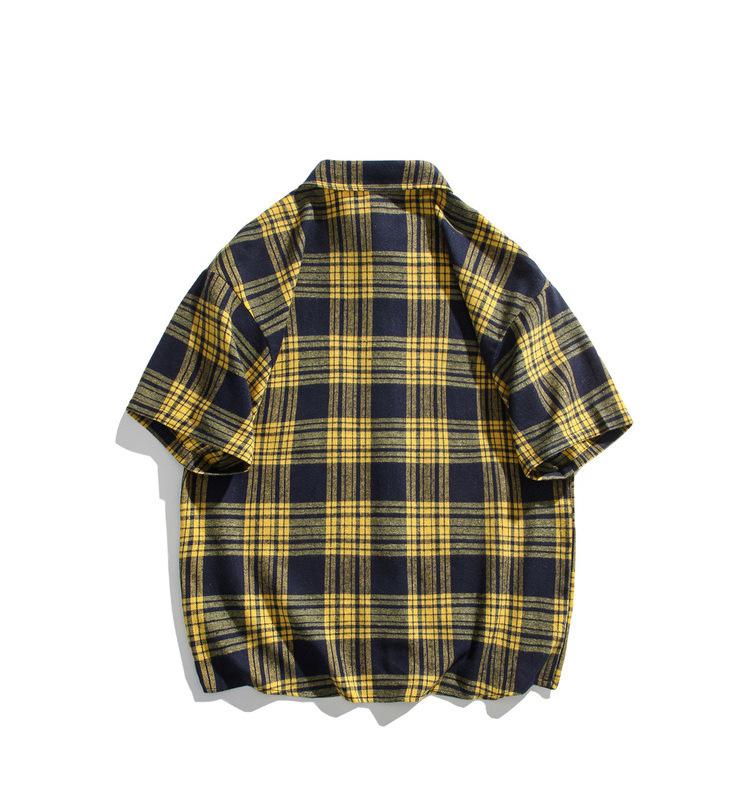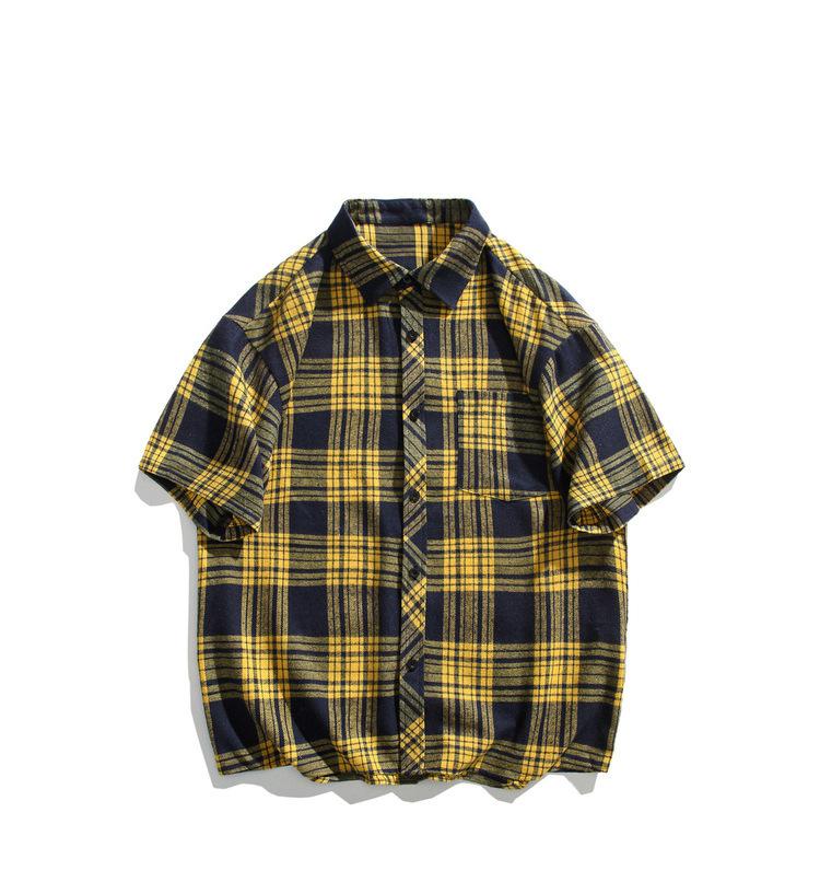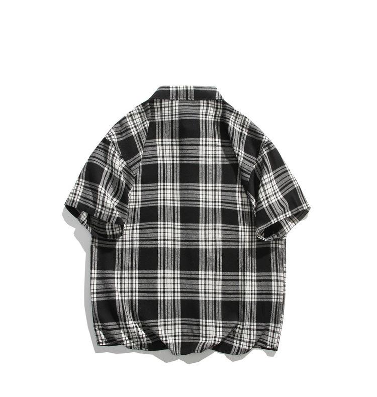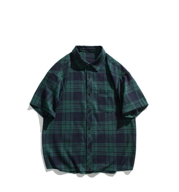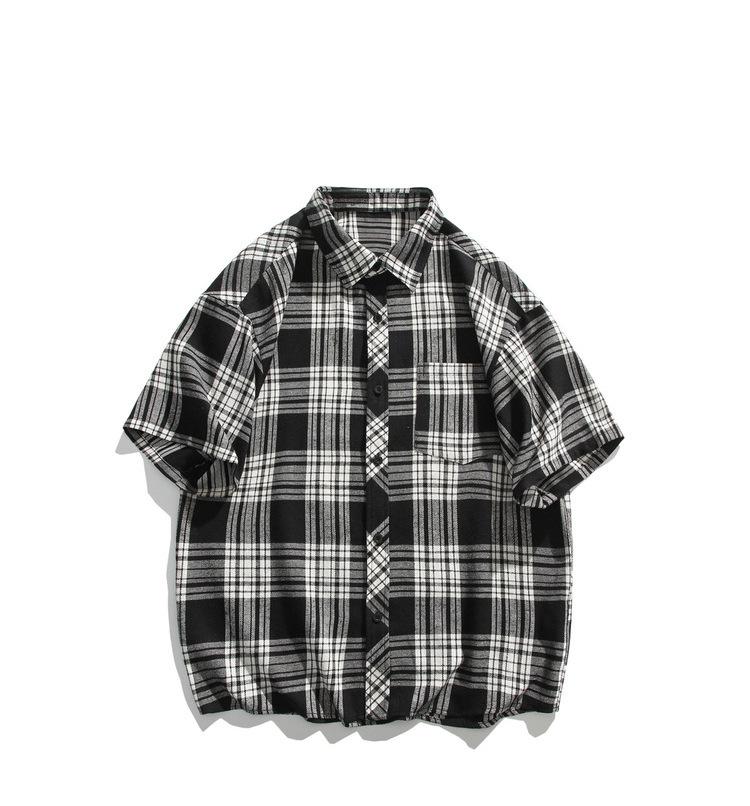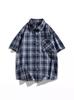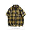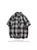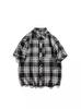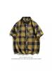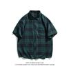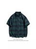Camisa a cuadros retro de moda para hombre, camisa informal de manga corta con solapa de talla grande, de verano 2024