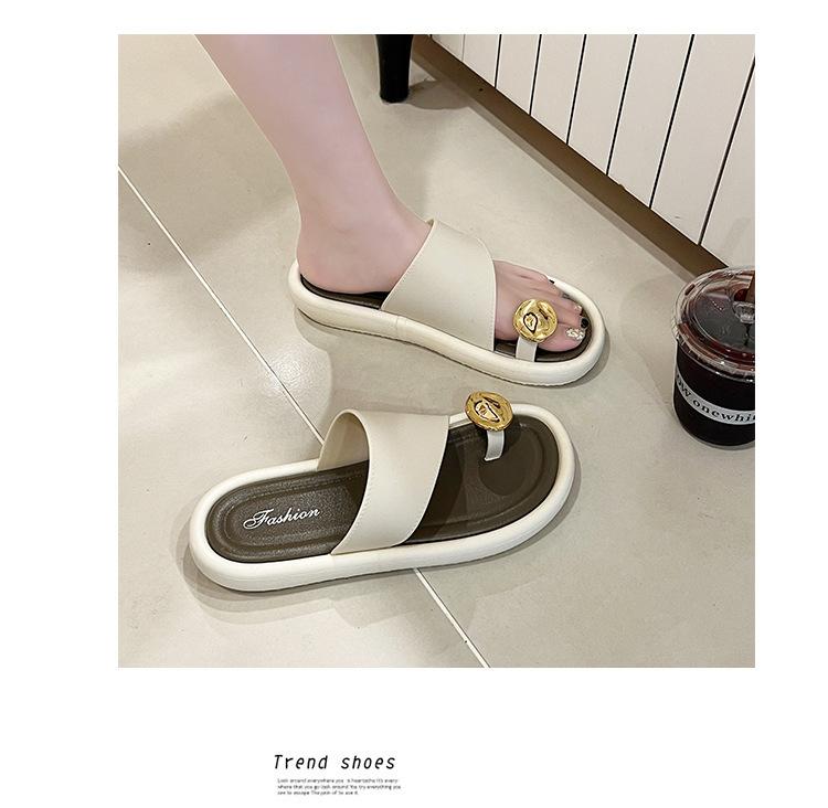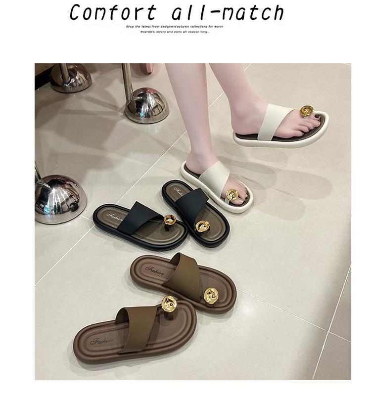 Compra Sandalias tipo tanga de nuevo estilo para mujer, Ropa exterior de moda, Verano 2024 Versátiles Zapatos de playa casuales de nicho de suela plana para mujer al por mayor en Joom.pro