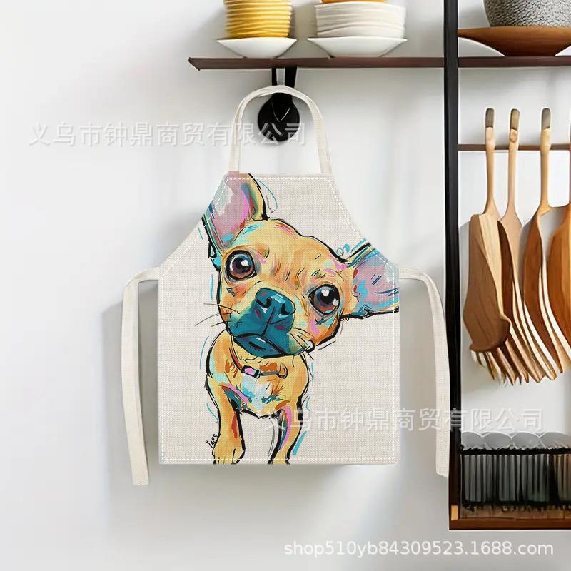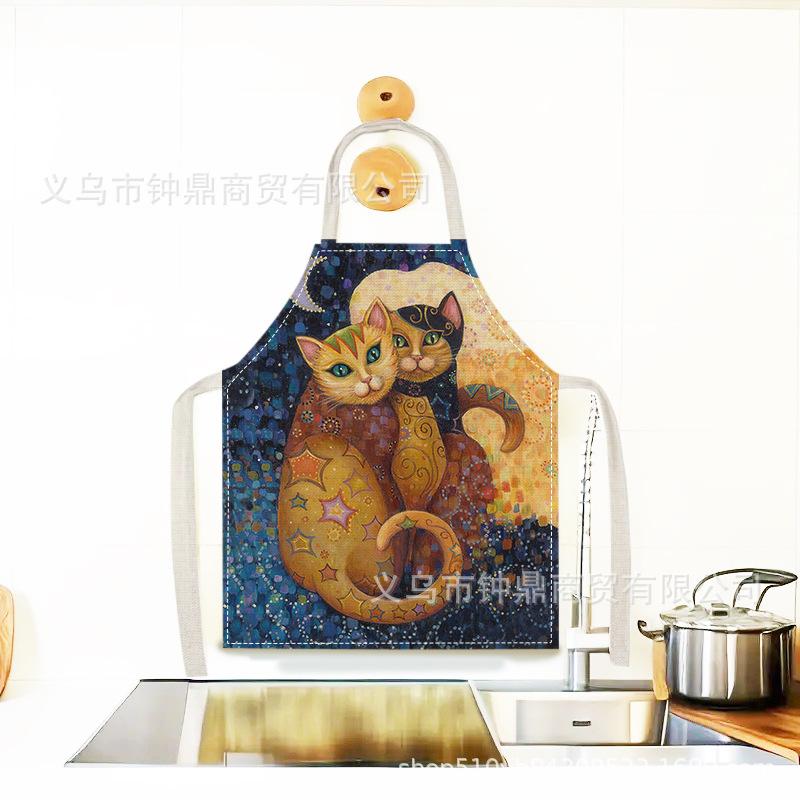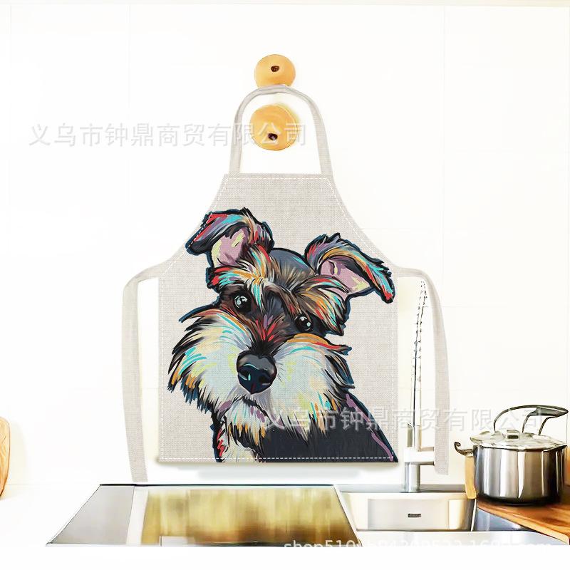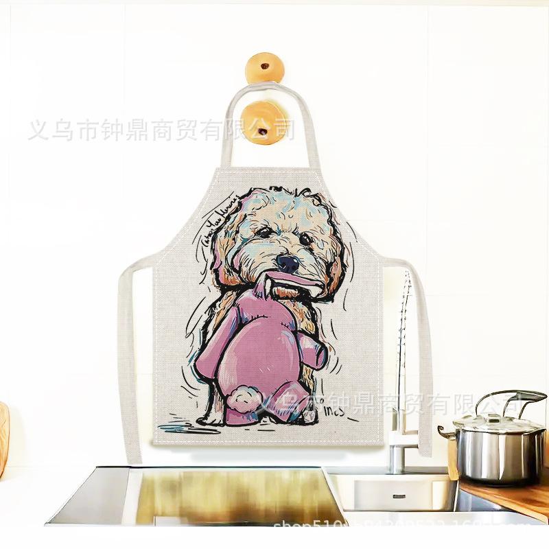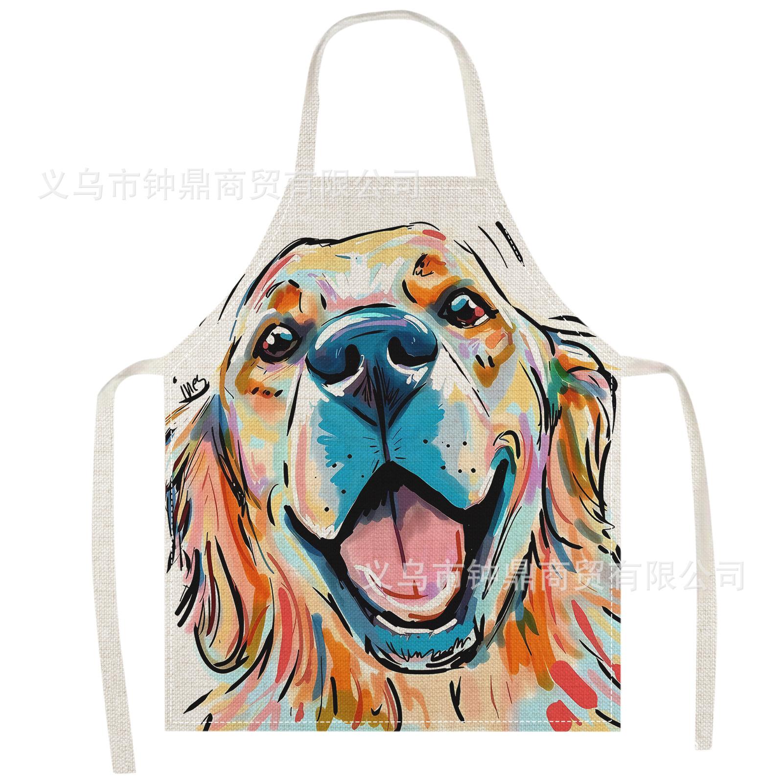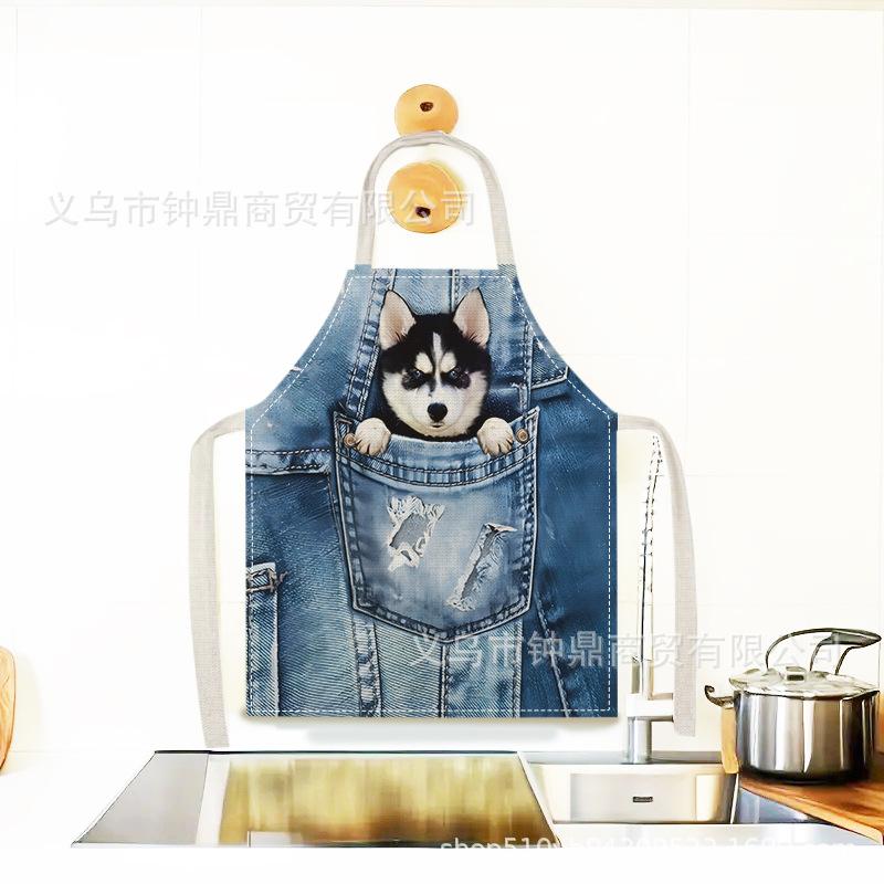 Delantal de la Nueva Serie Animal de Venta Caliente Transfronteriza Material de Lino Estampado Animal a Prueba de Polvo y Resistente a las Manchas Delantal Animal para el Hogar