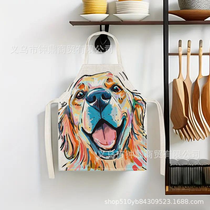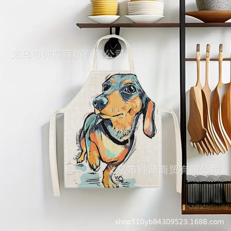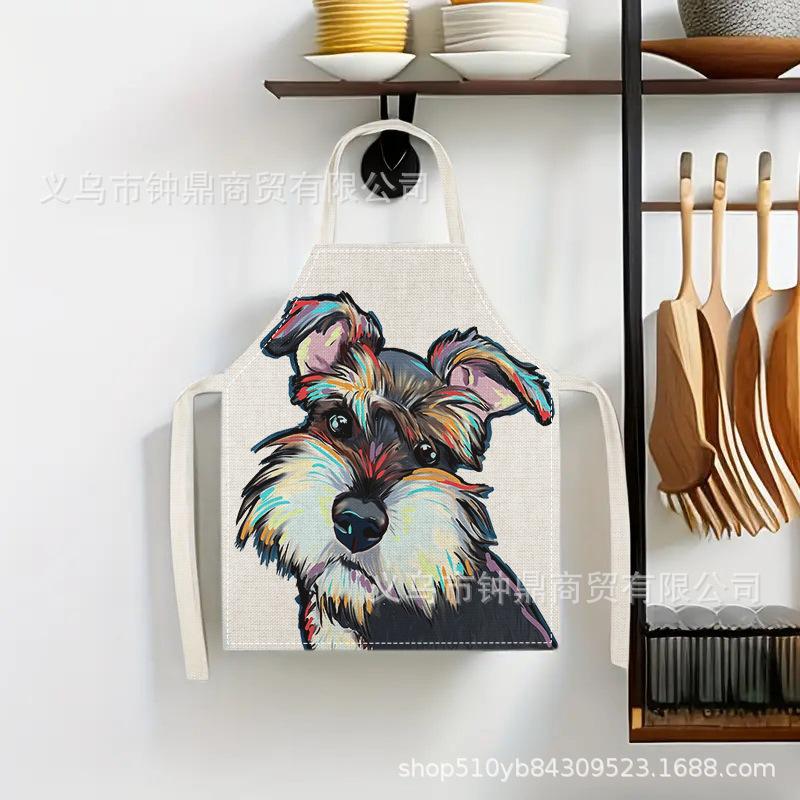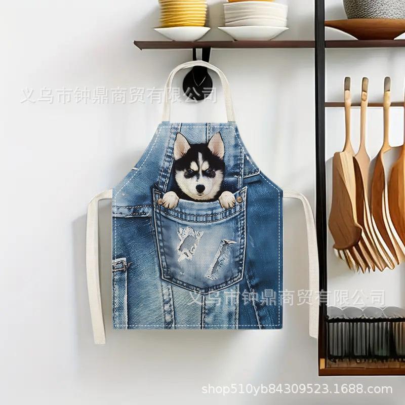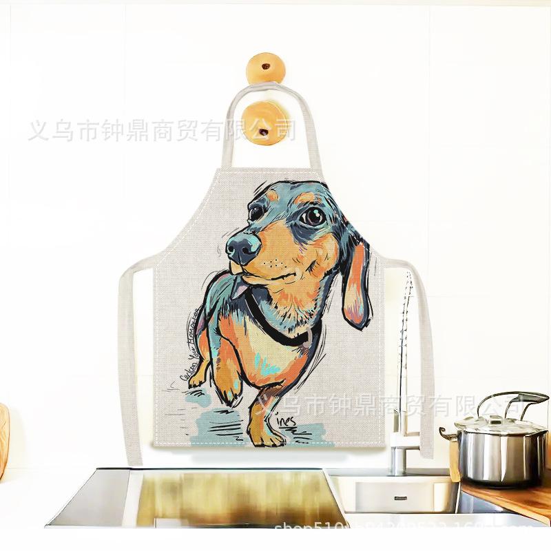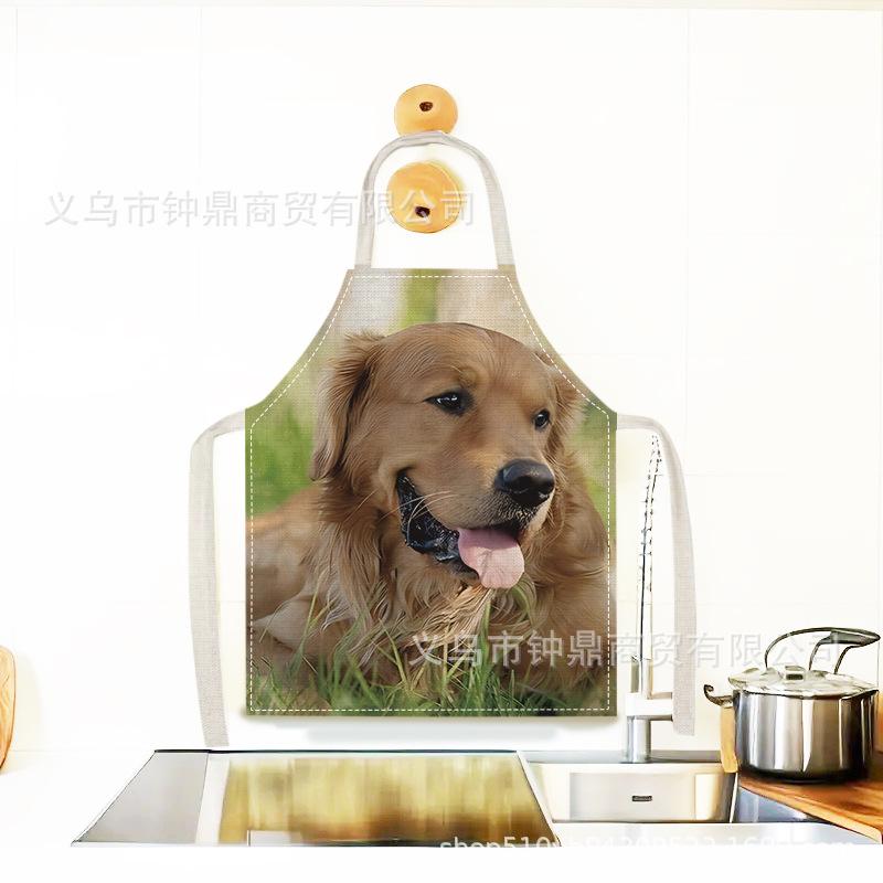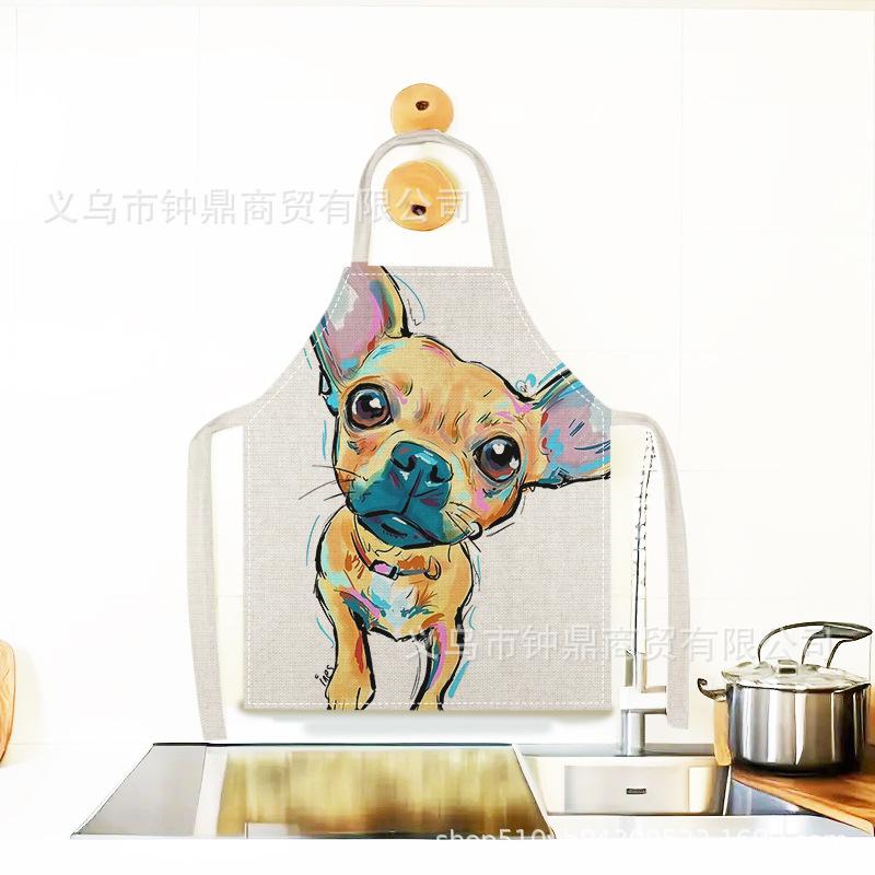 Delantal de la Nueva Serie Animal de Venta Caliente Transfronteriza Material de Lino Estampado Animal a Prueba de Polvo y Resistente a las Manchas Delantal Animal para el Hogar