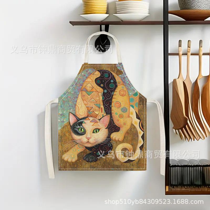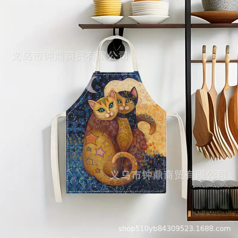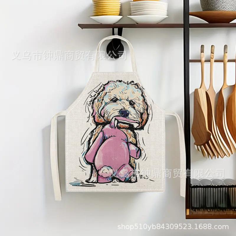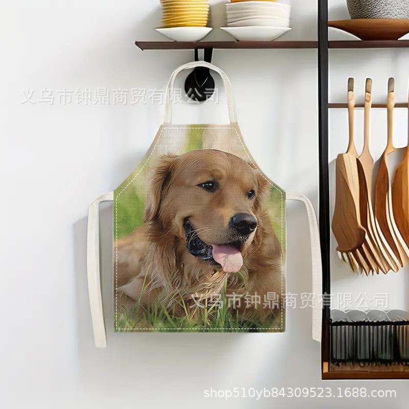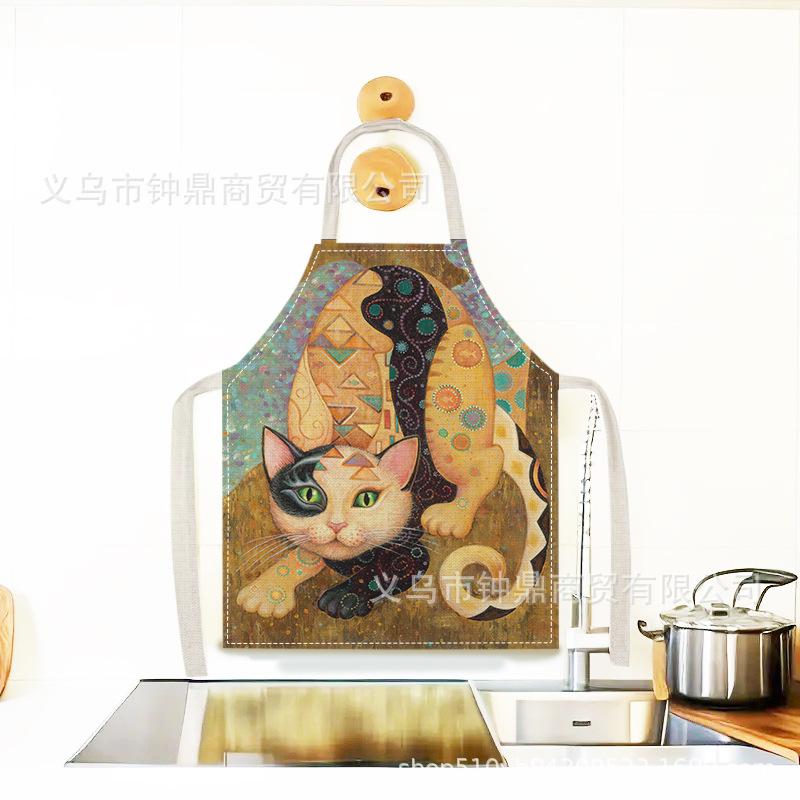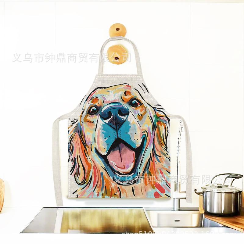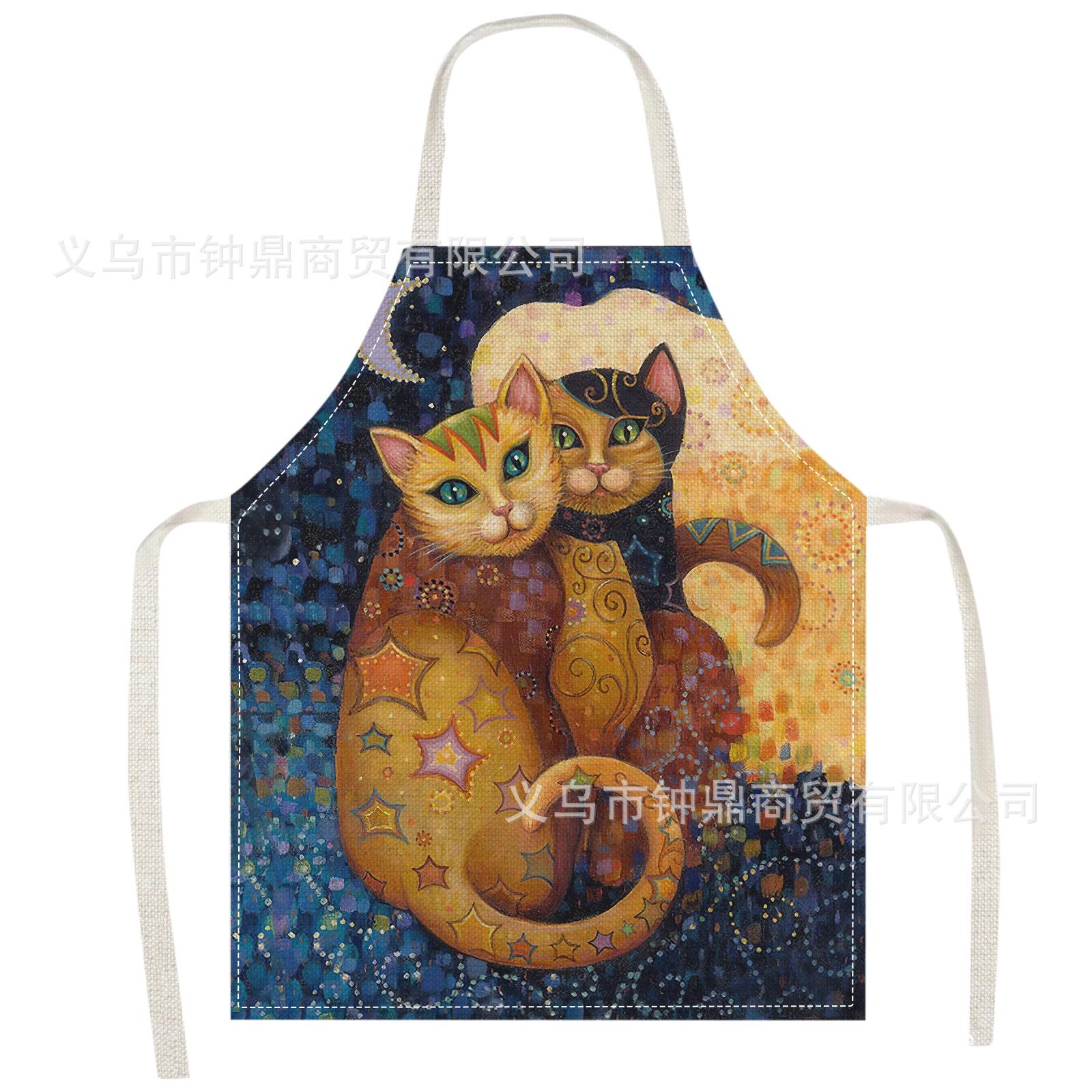 Delantal de la Nueva Serie Animal de Venta Caliente Transfronteriza Material de Lino Estampado Animal a Prueba de Polvo y Resistente a las Manchas Delantal Animal para el Hogar